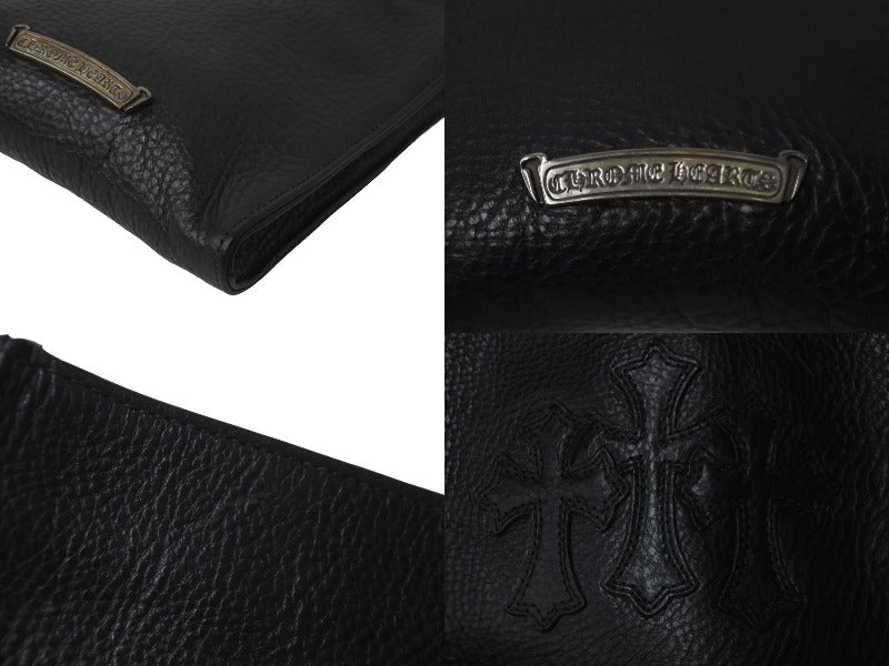 極美品 CHROMEHEARTS クロムハーツ スクエアポケット ショルダーバッグ セメタリークロス スクロールラベル ブラック 中古 62336