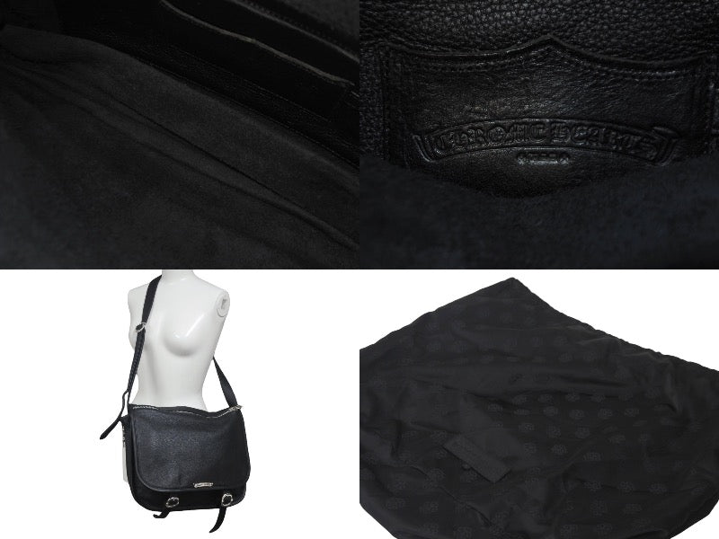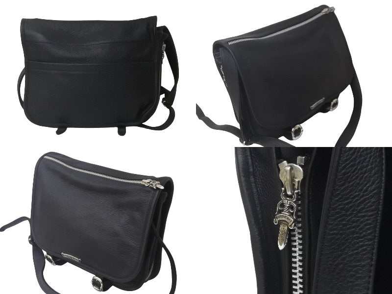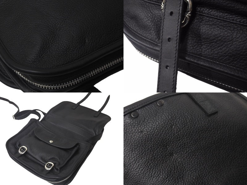 新品同様 CHROME HEARTS クロムハーツ ソフト ショルダー メッセンジャー バッグ ショルダーバッグ レザー ブラック 中古 63550