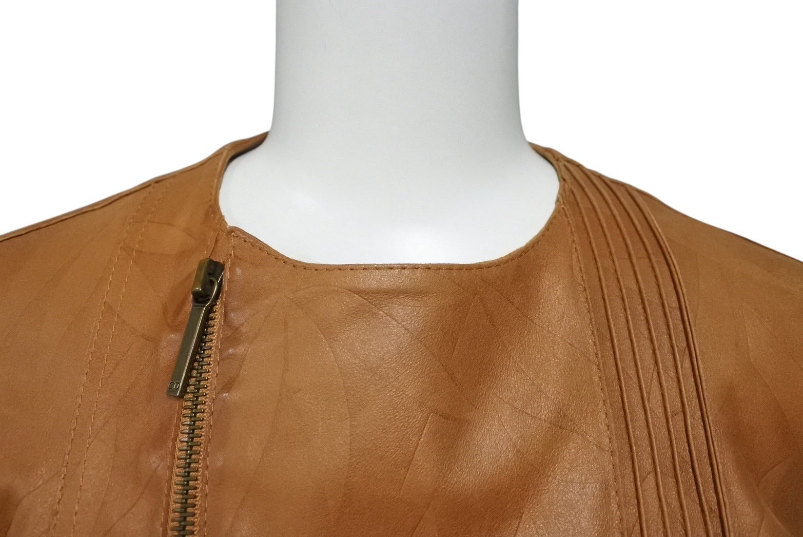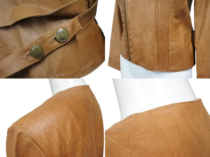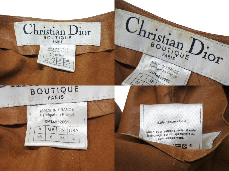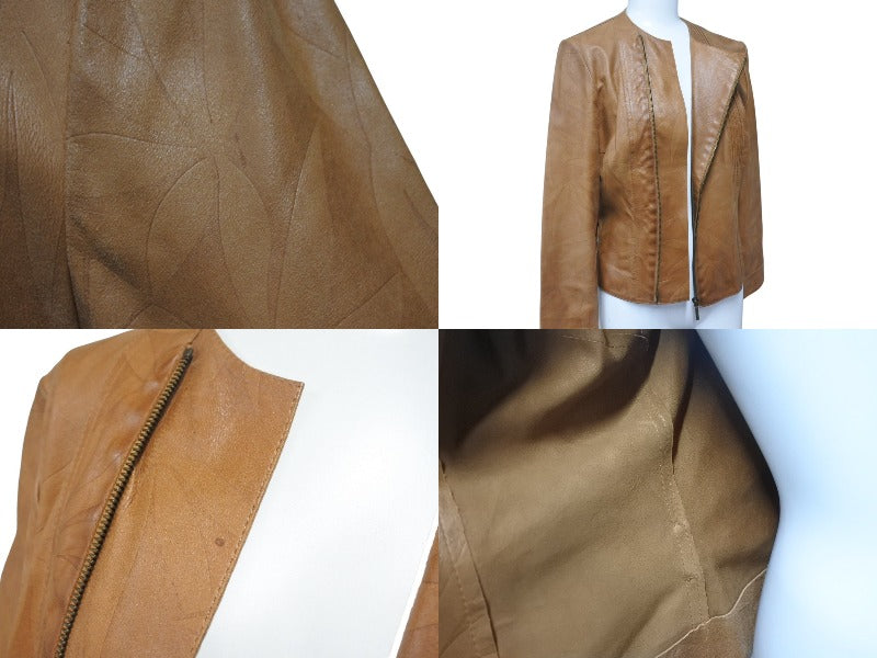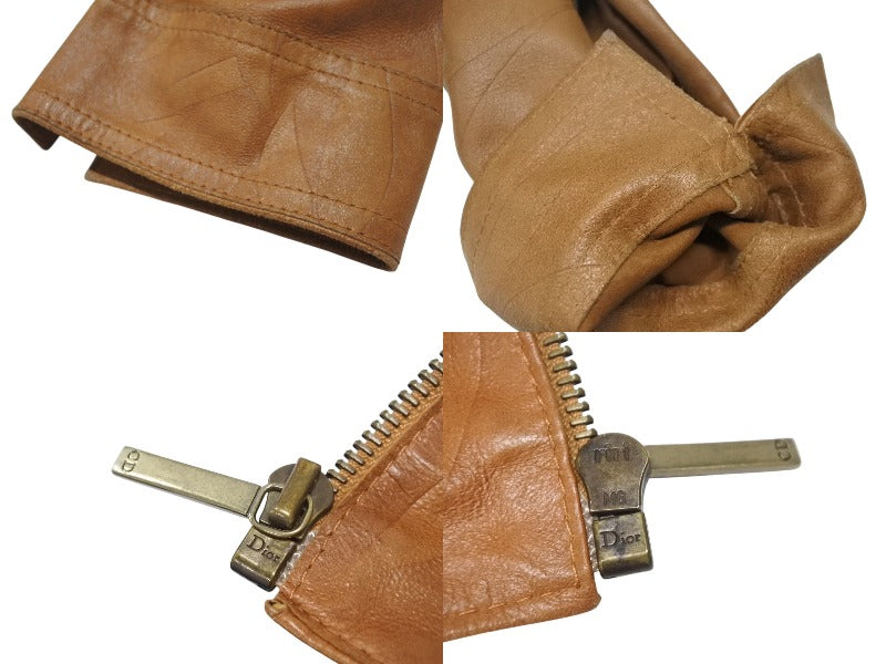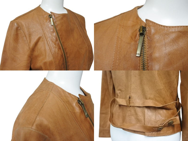 ChristianDior クリスチャンディオール ガリアーノ期 ジップアップ ノーカラージャケット ゴートレザー キャメル 36 美品 中古 4b001861