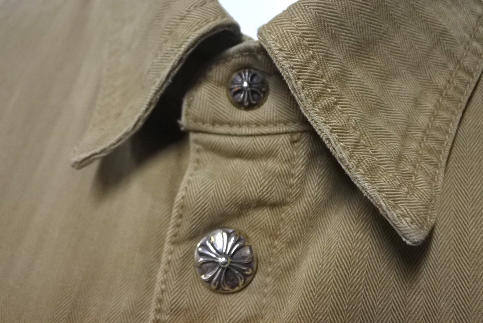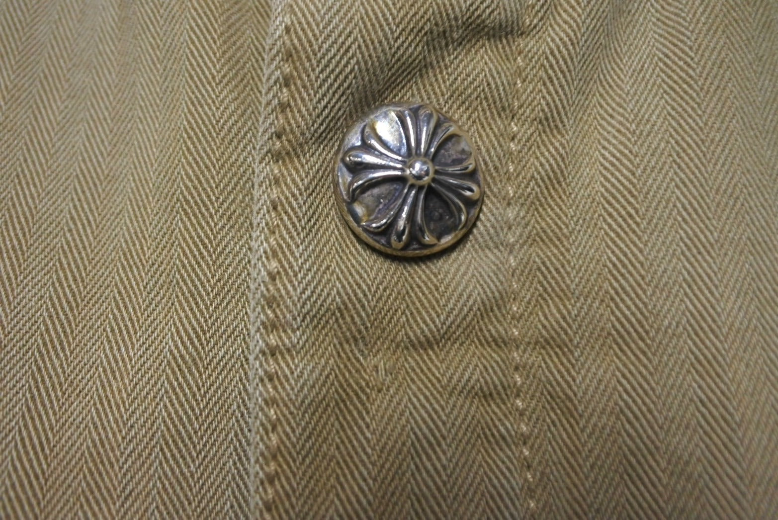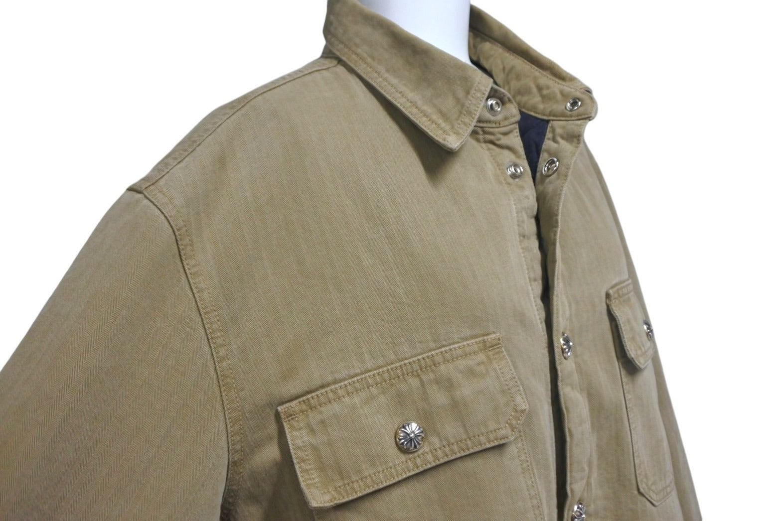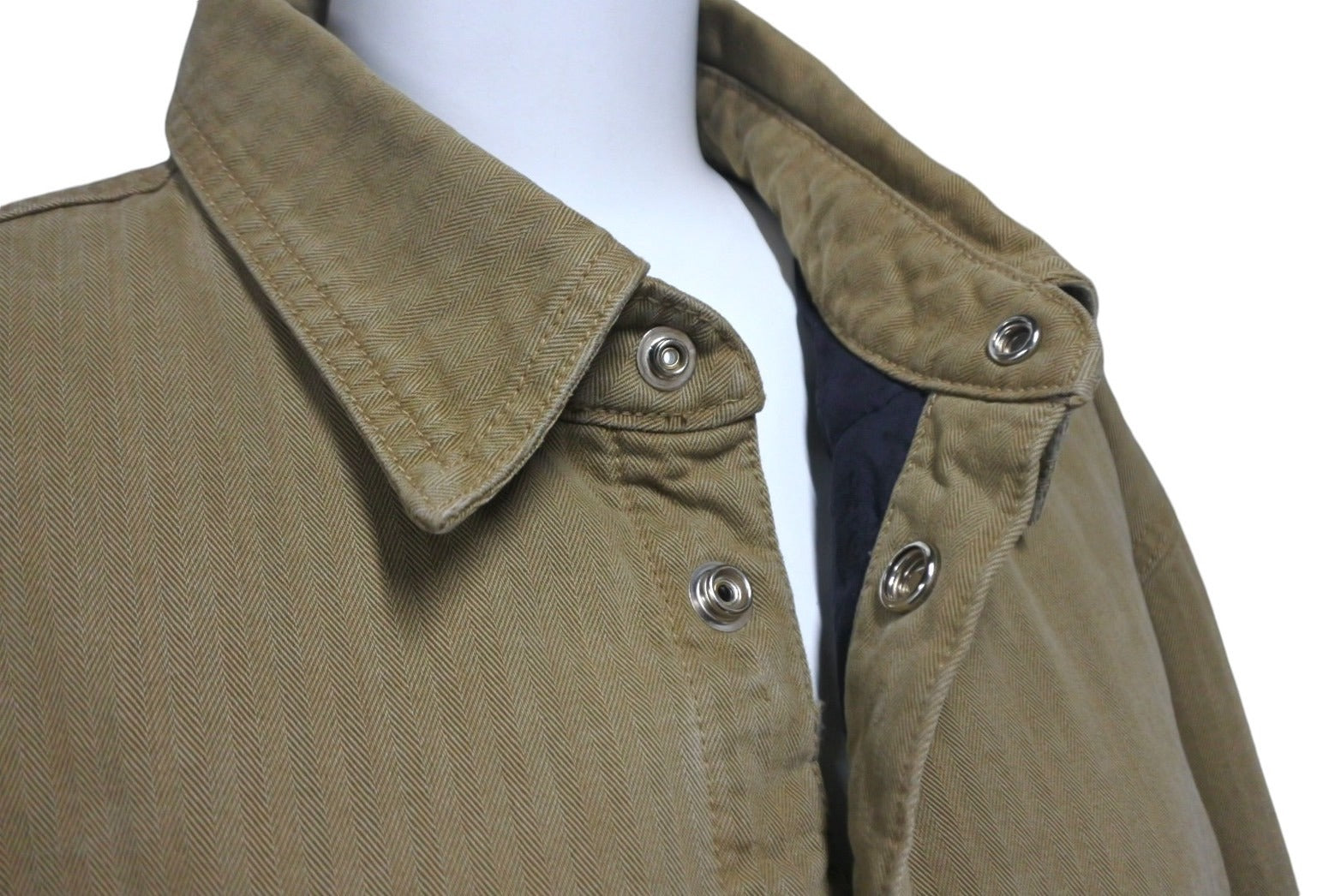 第二ボタン付近に引っ掛け跡あり、金具部分小傷、クスミありますが、その他目立った傷や汚れの少ない極美品です。