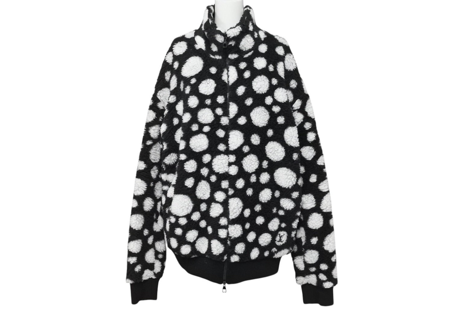 極美品 LOUISVUTTON ルイヴィトン 草間彌生 インフィニティドットフリースブルゾン HOY38WXX0 ホワイト ブラック XL 中古 4c069727