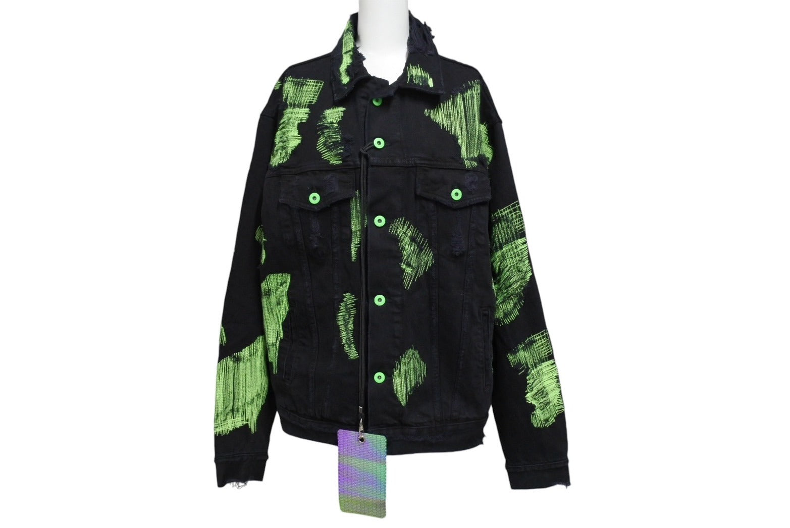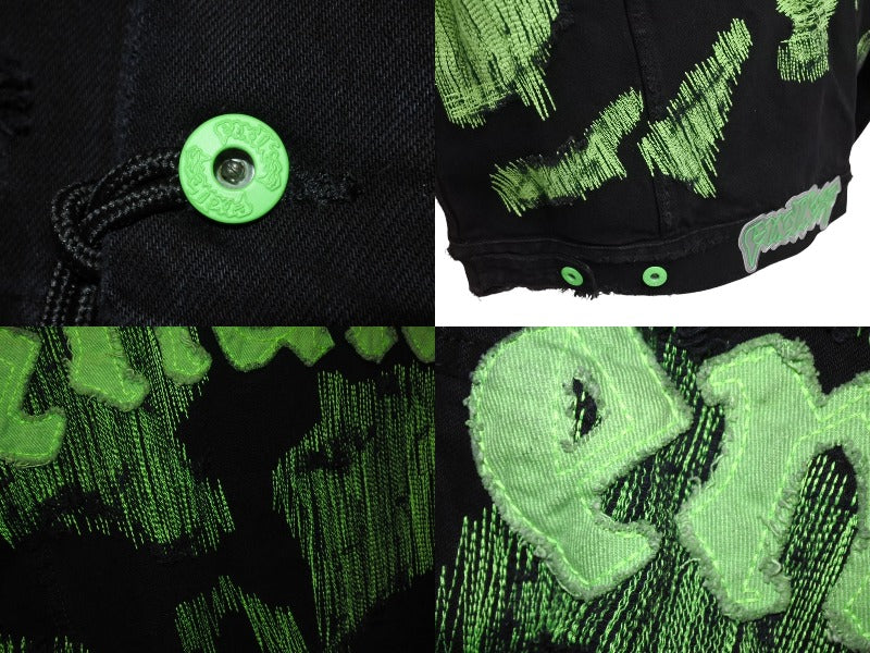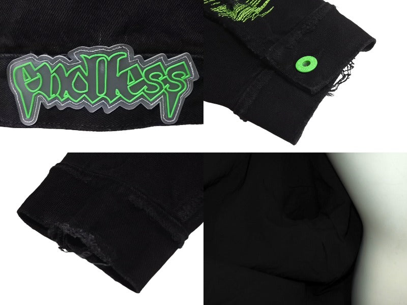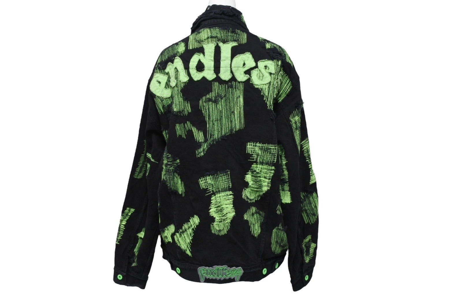新品未使用 Endless Denim エンドレスデニム デニムジャケット 刺繍 ブラック グリーン サイズM 中古 4c069843