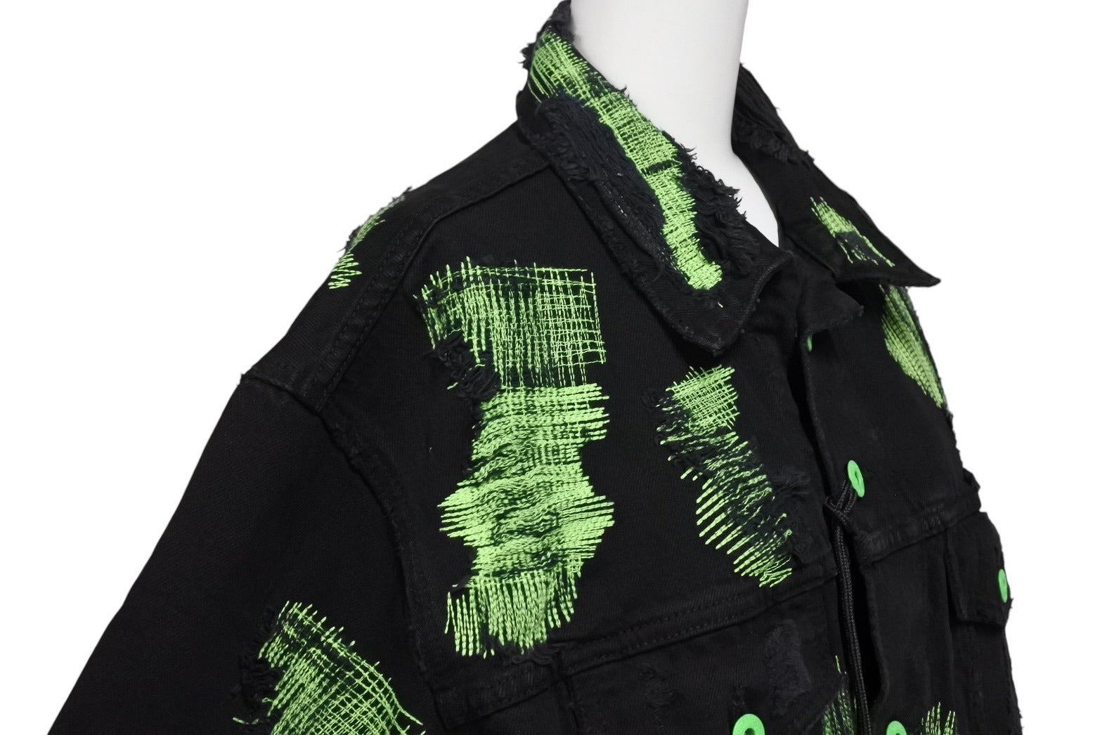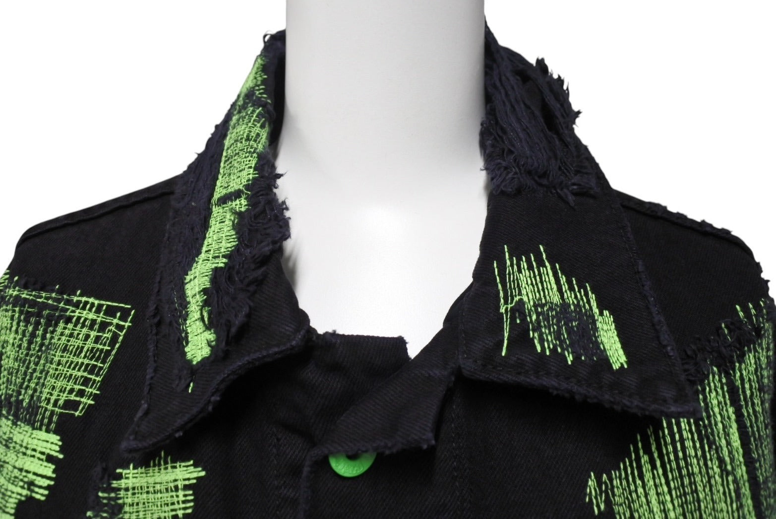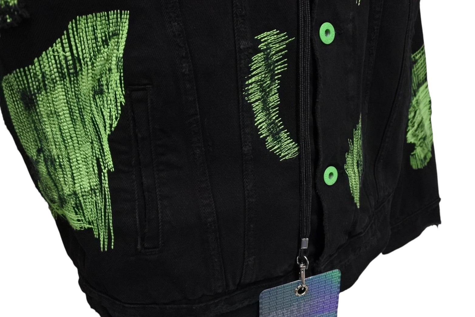 新品未使用 Endless Denim エンドレスデニム デニムジャケット 刺繍 ブラック グリーン サイズM 中古 4c069843