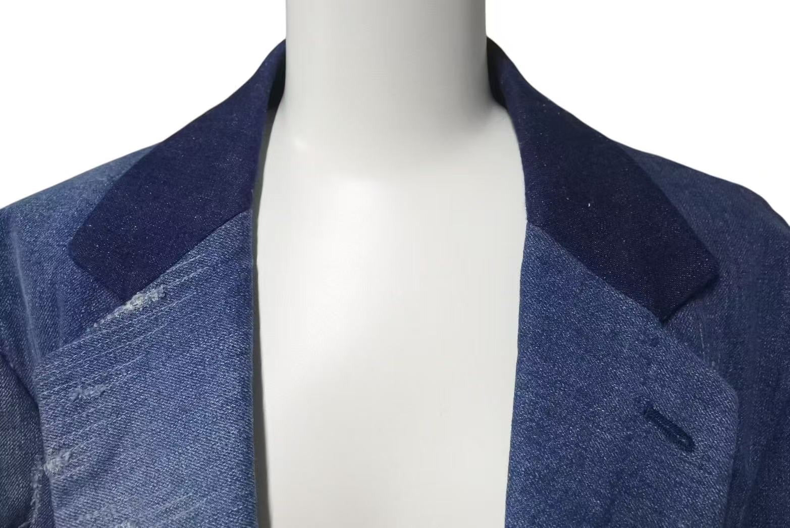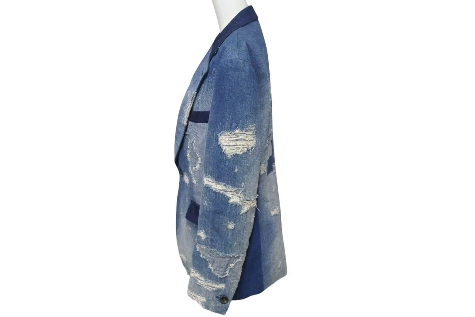 デニムパッチワークとダメージ加工デザインジャケットです。