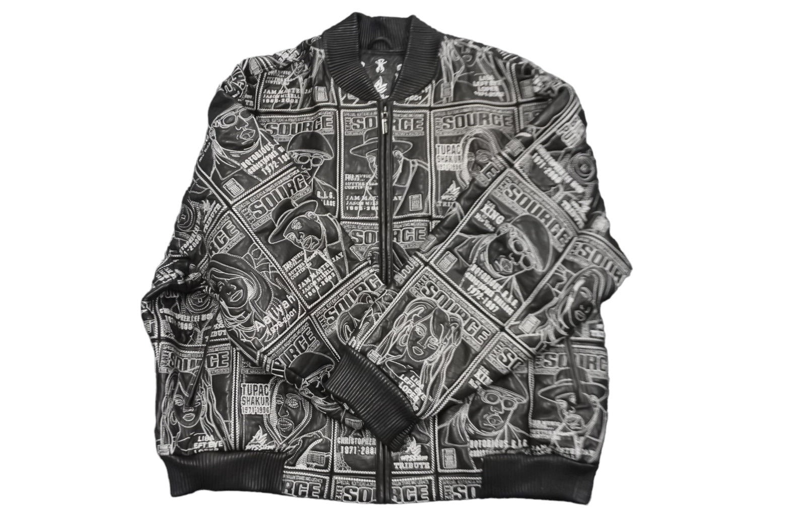 アメリカのHIPHOP雑誌SOURCE MAGAZINEの表紙をモチーフにしたデザインでRIPアーティストが全体に刺繍で落とし込まれた贅沢な作りです。2PAC、ビギー、ジャムマスタージェイ、アリーヤ、レフトアイ、ビッグパンが描かれていています。
