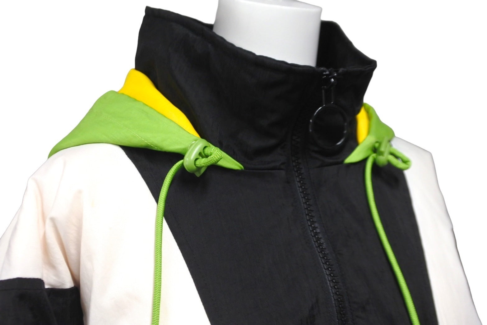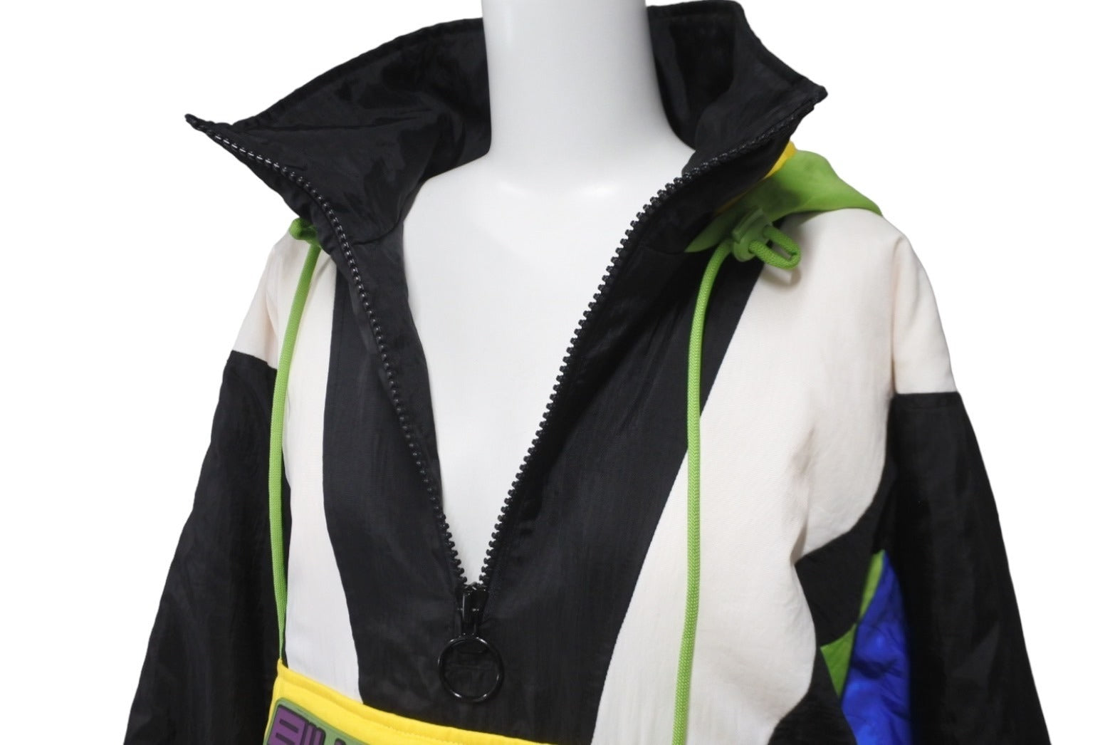 マルチカラーで表面にラバーでロゴが施された存在感のあるジャケットです。