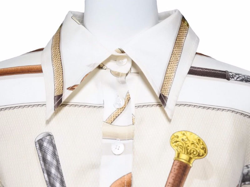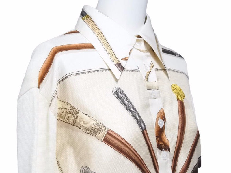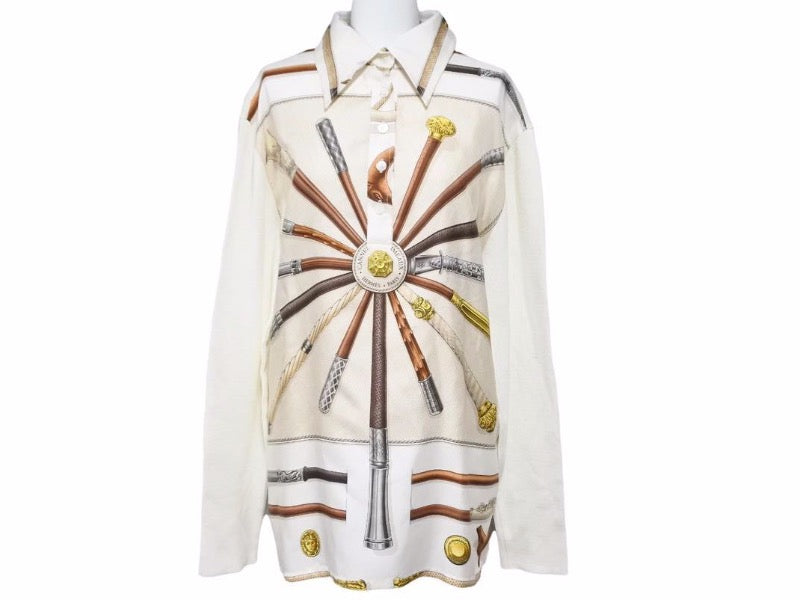 エルメス スカーフ柄 ポロシャツ ドッキング ヨーロピアン 切り替え 長袖 シルク トップス レディース 中古 39418