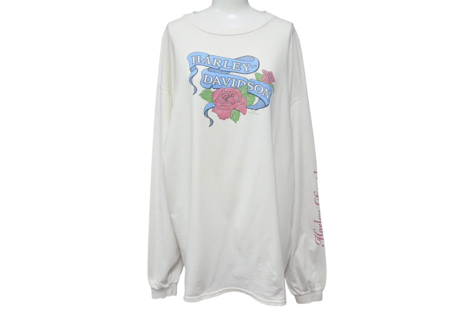 HARLEY DAVIDSON ハーレーダビッドソン VINTAGE ヴィンテージ ローズ ロゴ 長袖Tシャツ ホワイト 1992年 薔薇 サイズXL 美品 中古 4b001524
