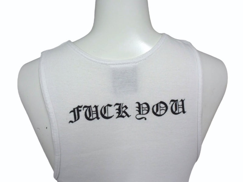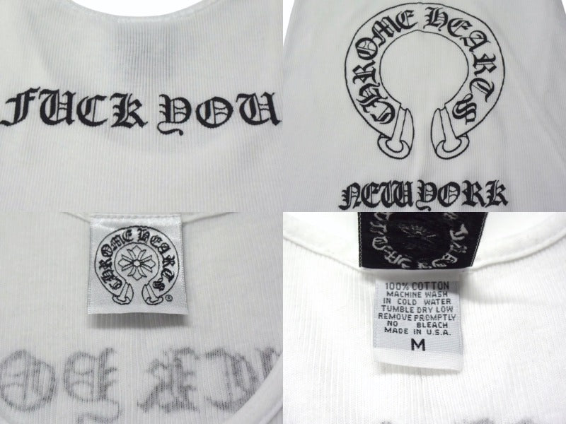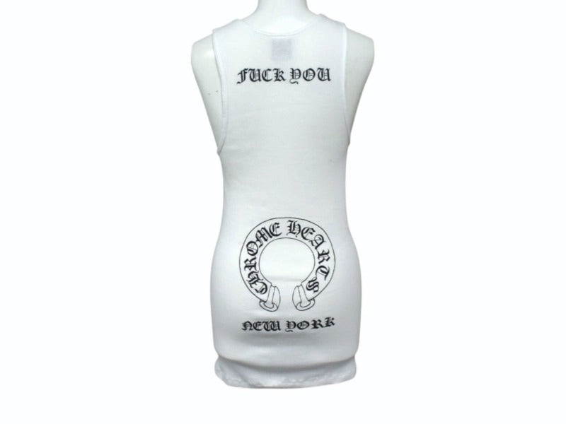 ホースシュー、CHクロス、NEW YORK、FUCK YOUのプリントが施されたタンクトップです。