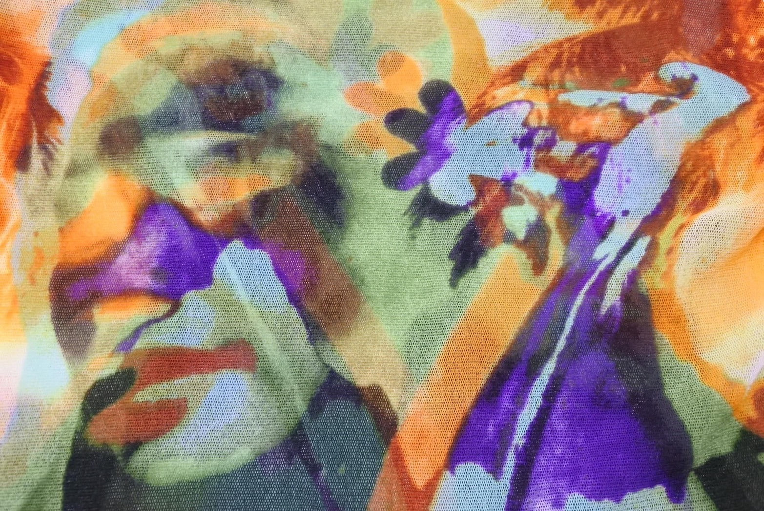 アーティスティックな総柄模様でスタイリングの主役になります。
