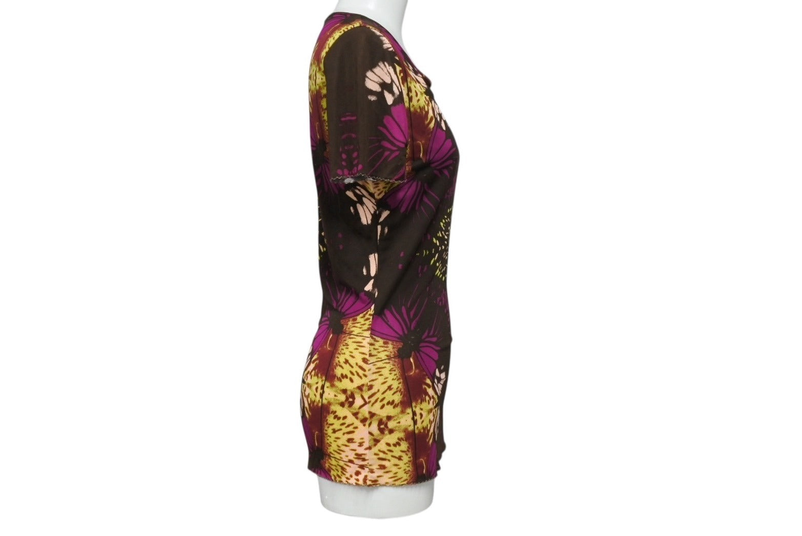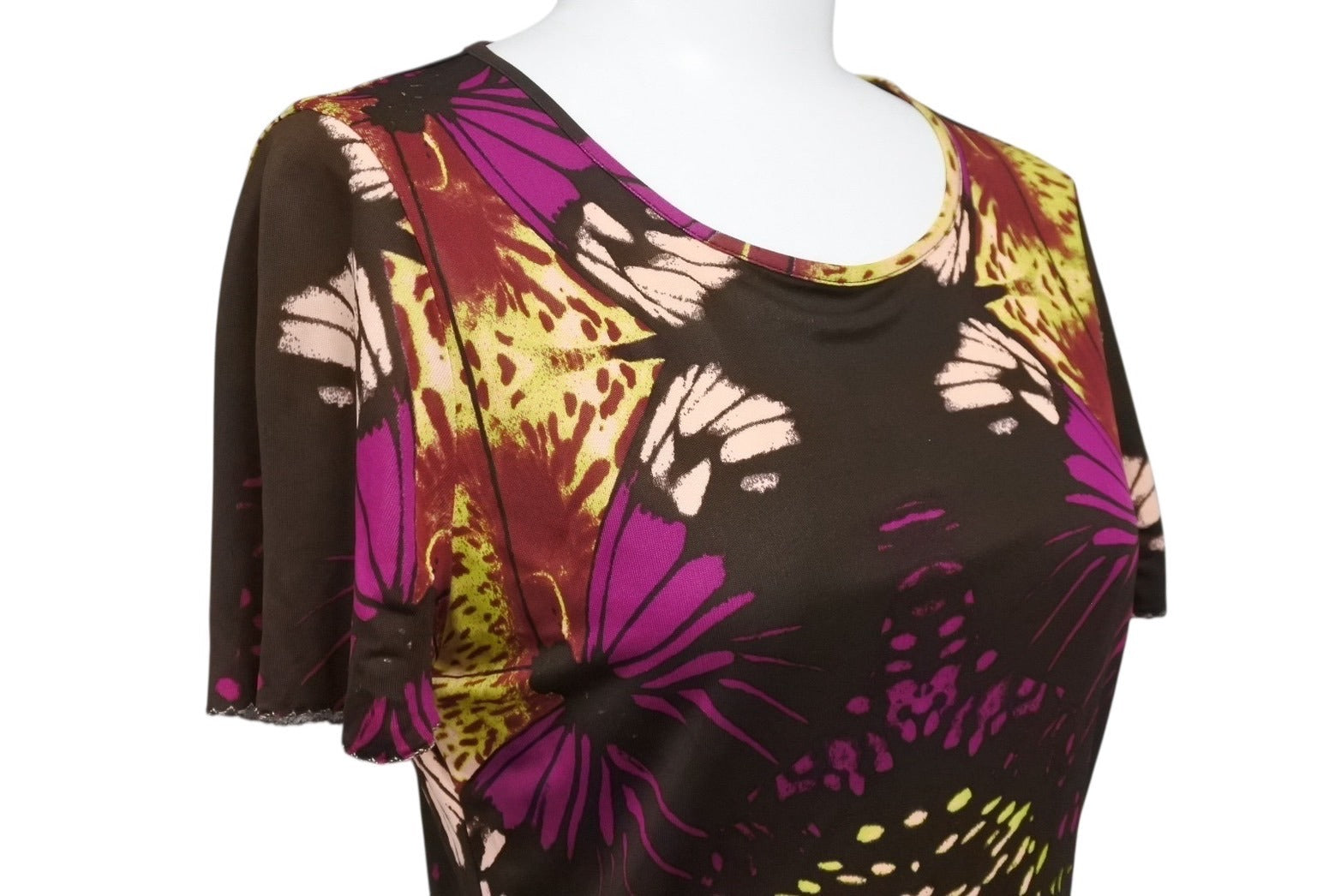 フラワーモチーフの総柄デザインが目を惹く半袖Tシャツです。