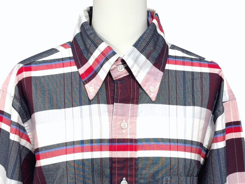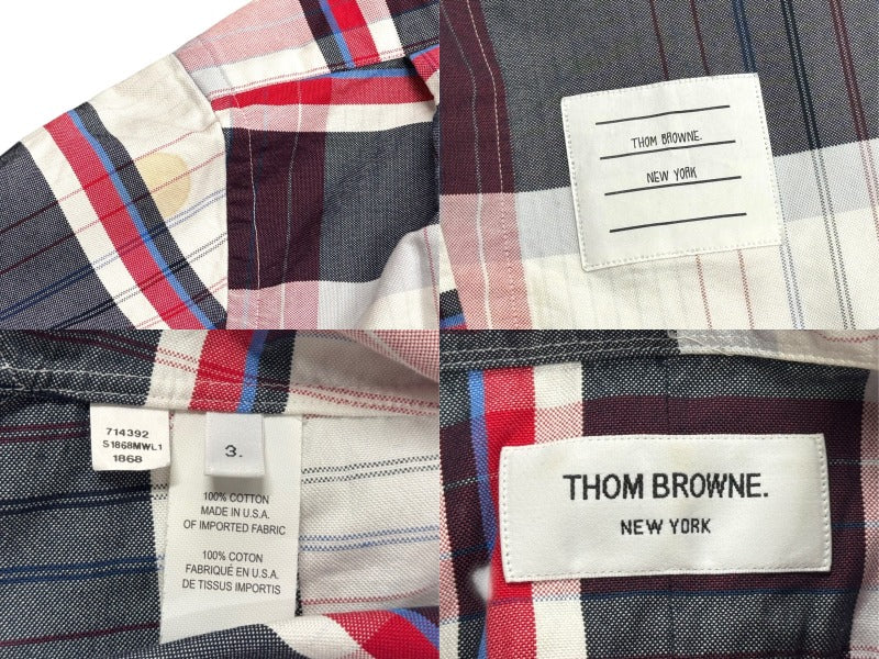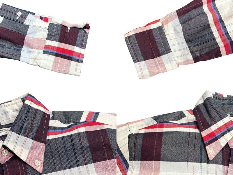 極美品 THOM BROWNE トムブラウン 長袖シャツ チェック柄 714392 USA製 コットン レッド サイズ3 中古 4b005775