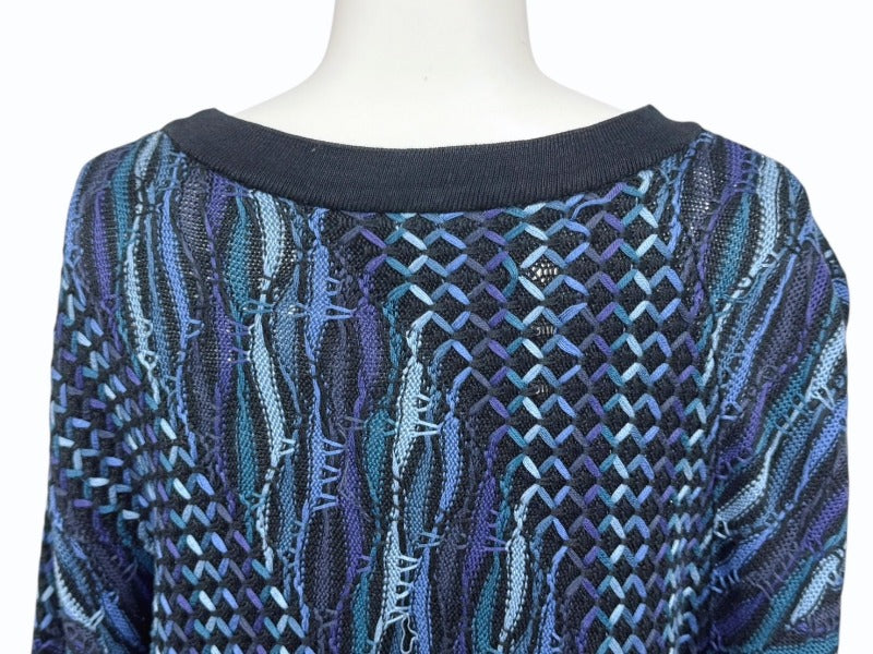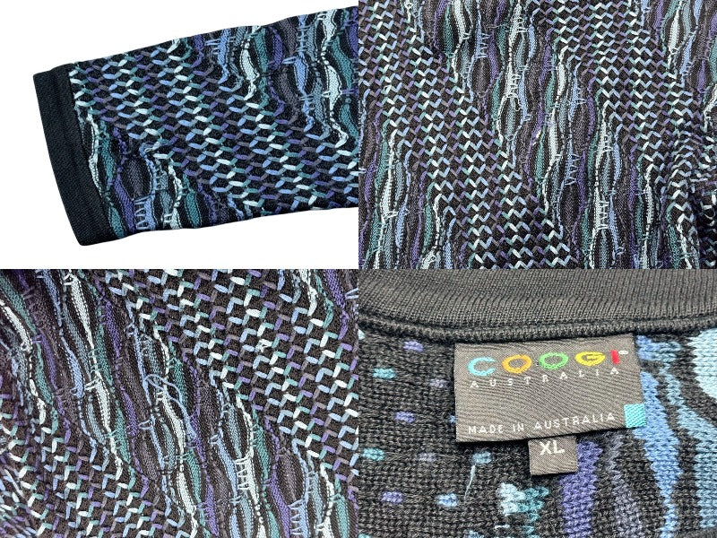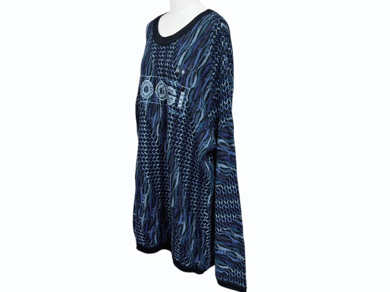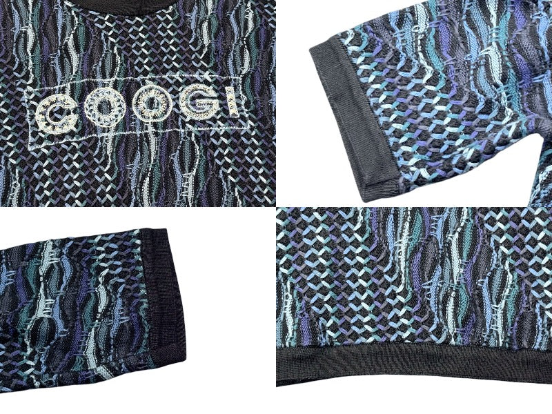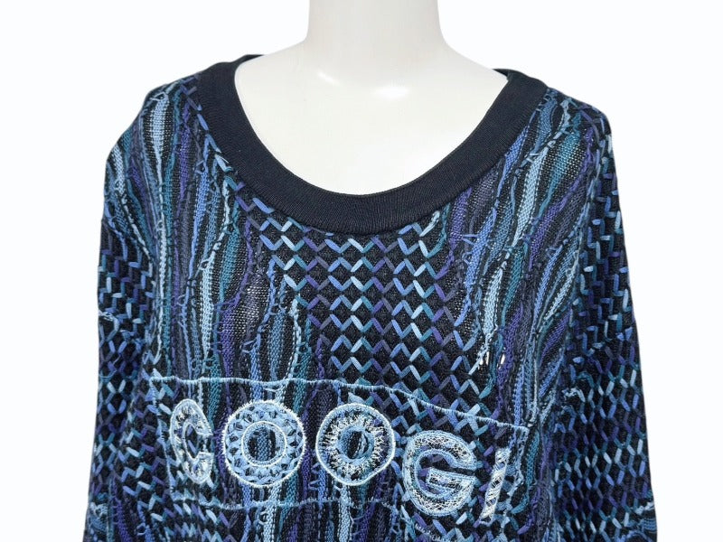 COOGI クージー vintage 3D立体ニット 長袖 編み込み 刺繍 ネイビーブラックブルー系 サイズXL 美品 中古 4b007104