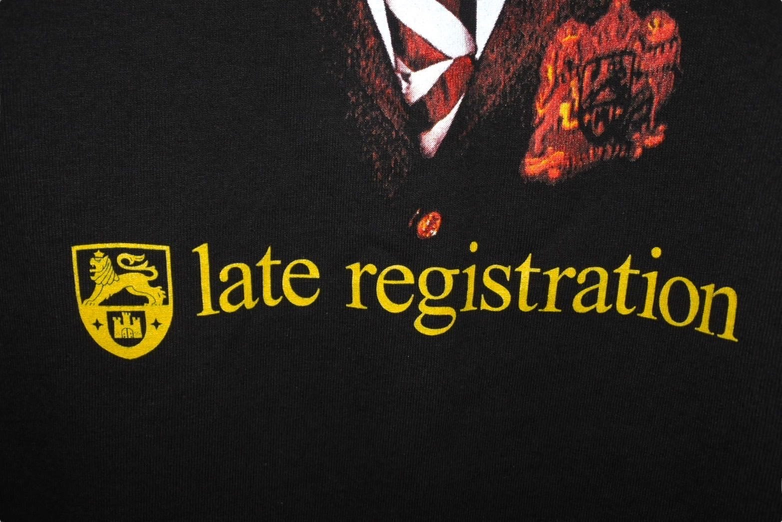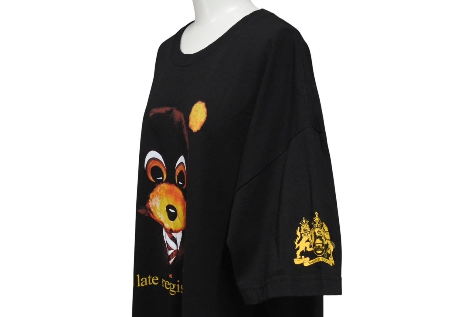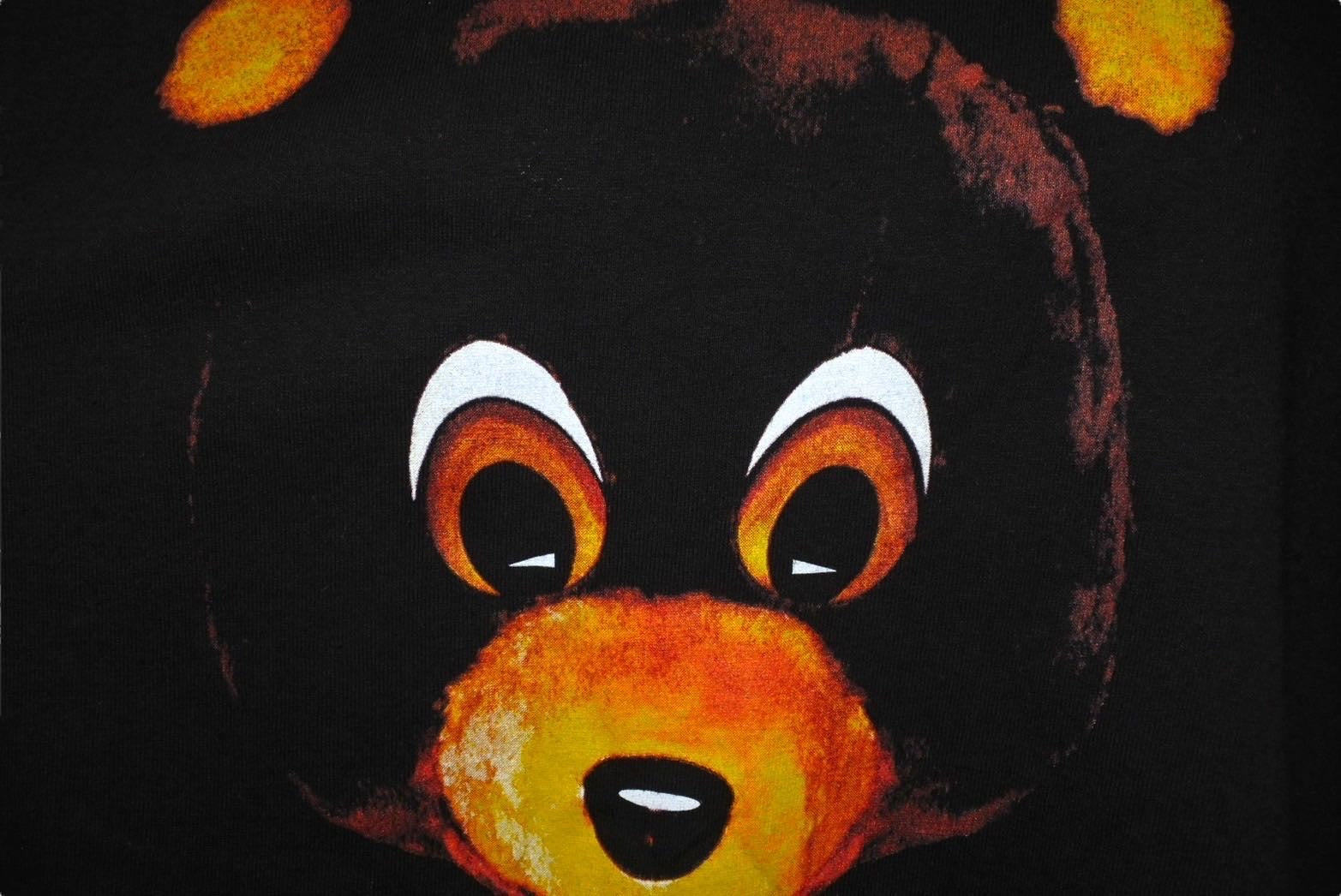 カニエウェストを主張する正面のプリントと、袖のプリントが目を惹くアイテムです。