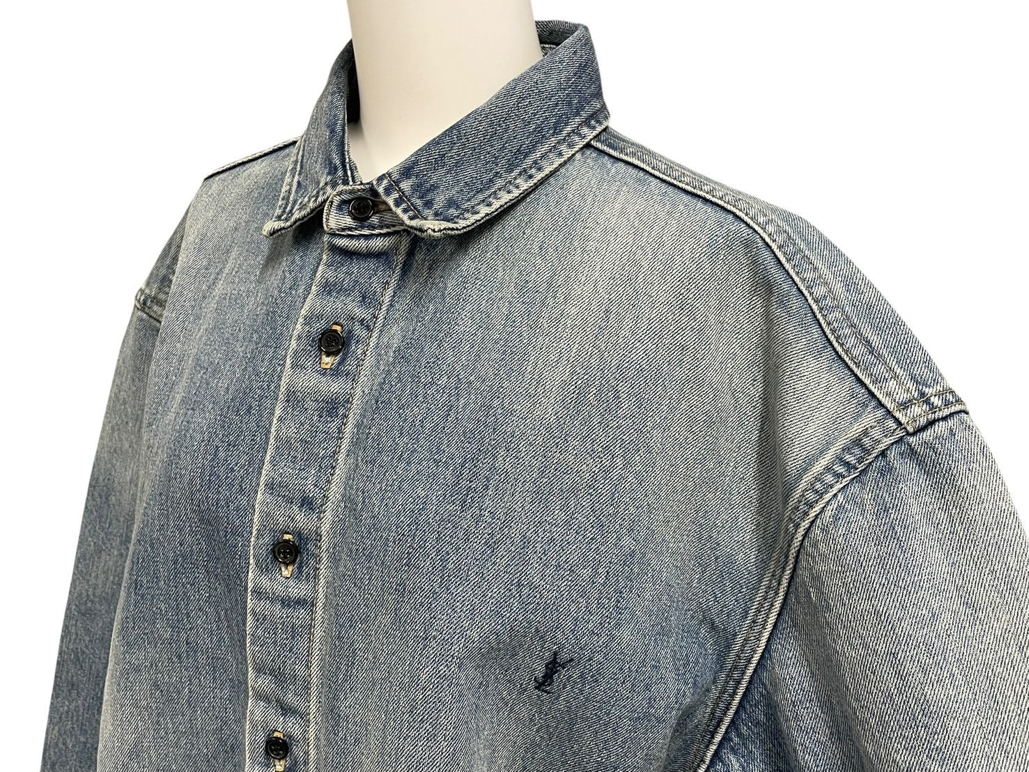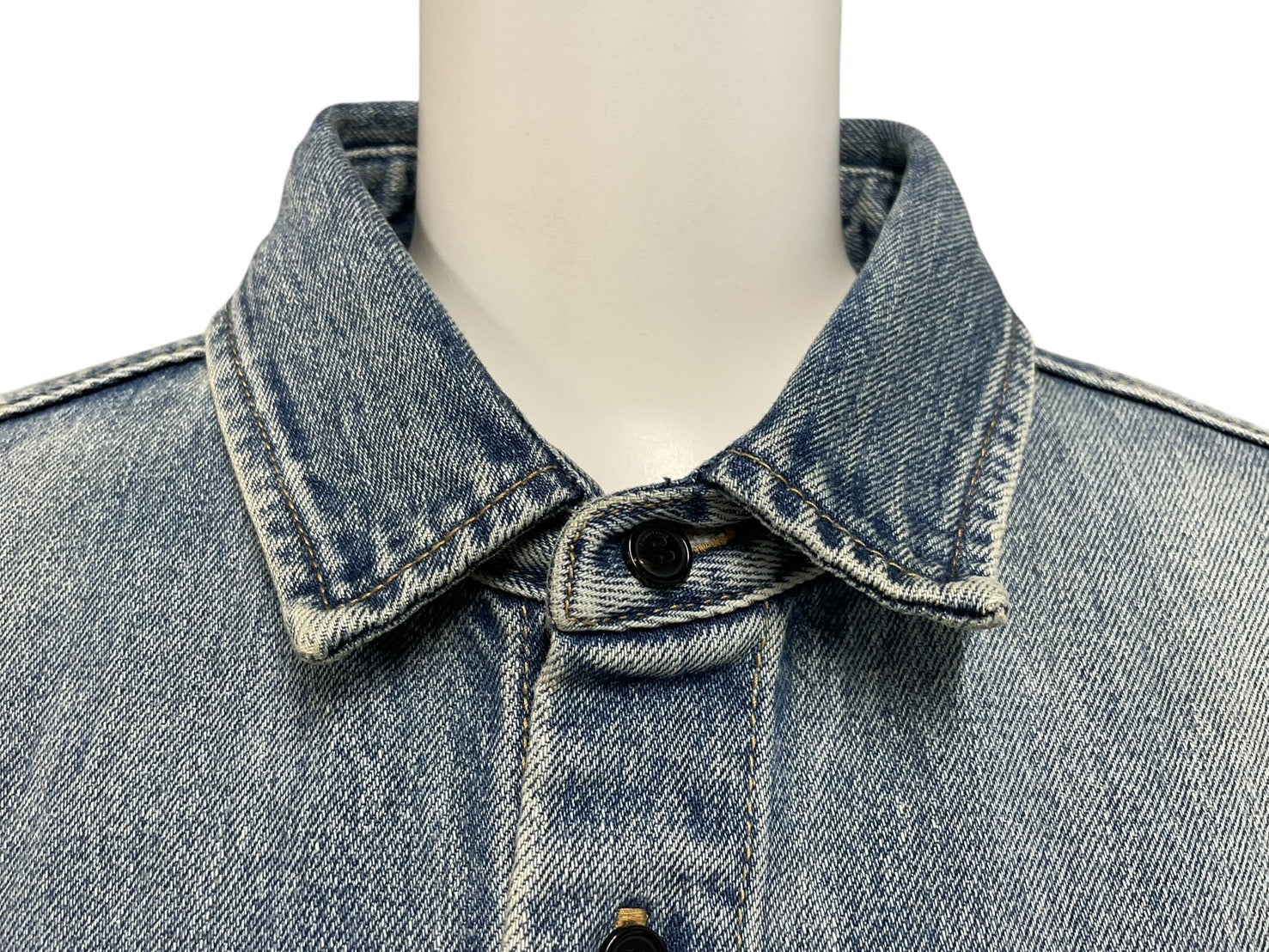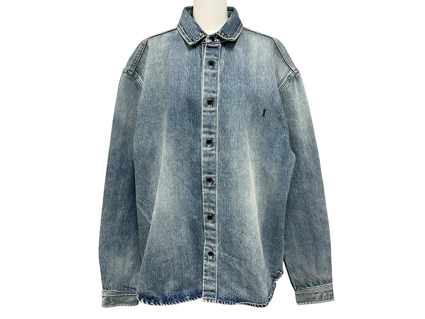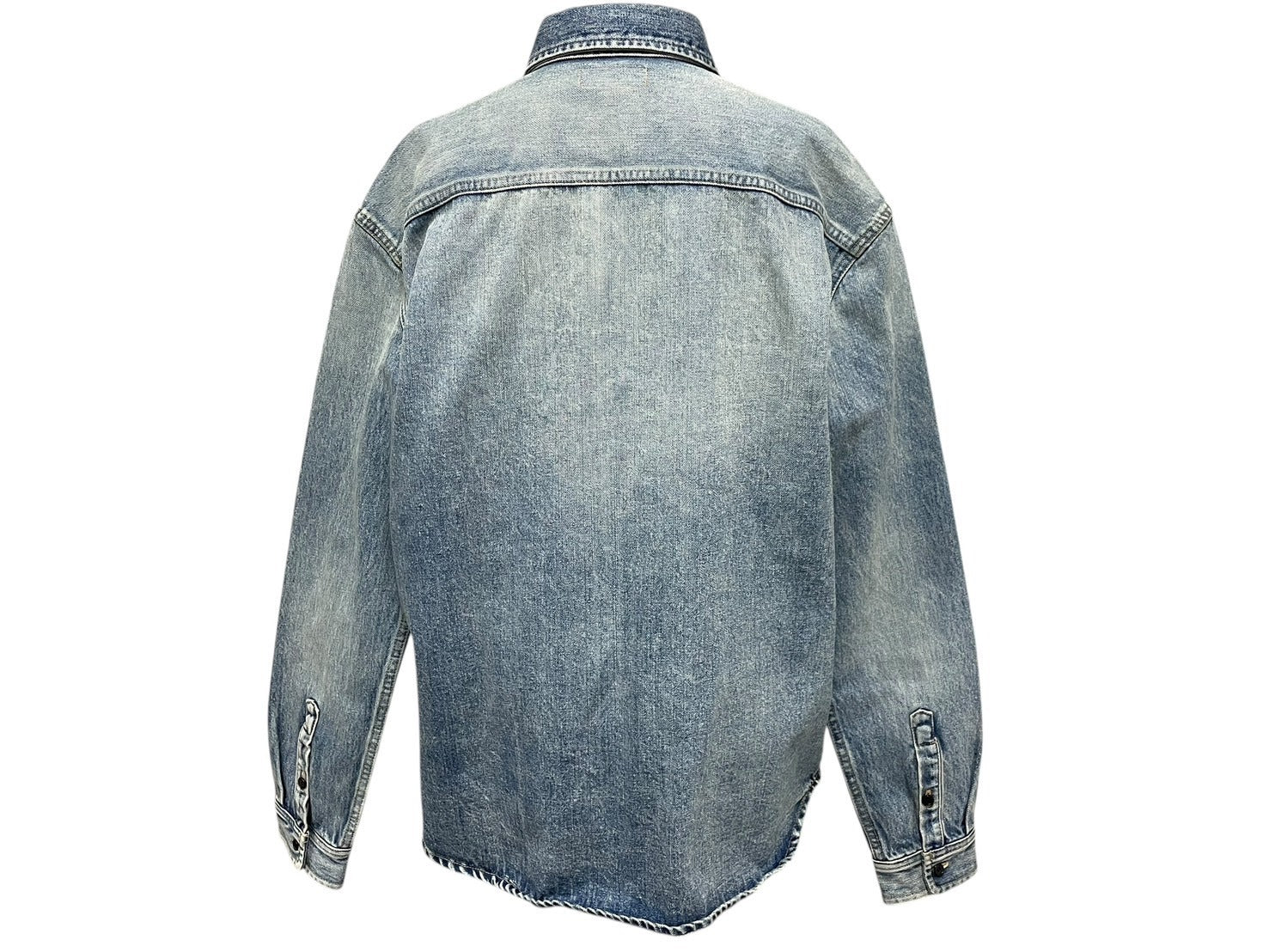 シンプルなデザインなデニム長袖シャツです。