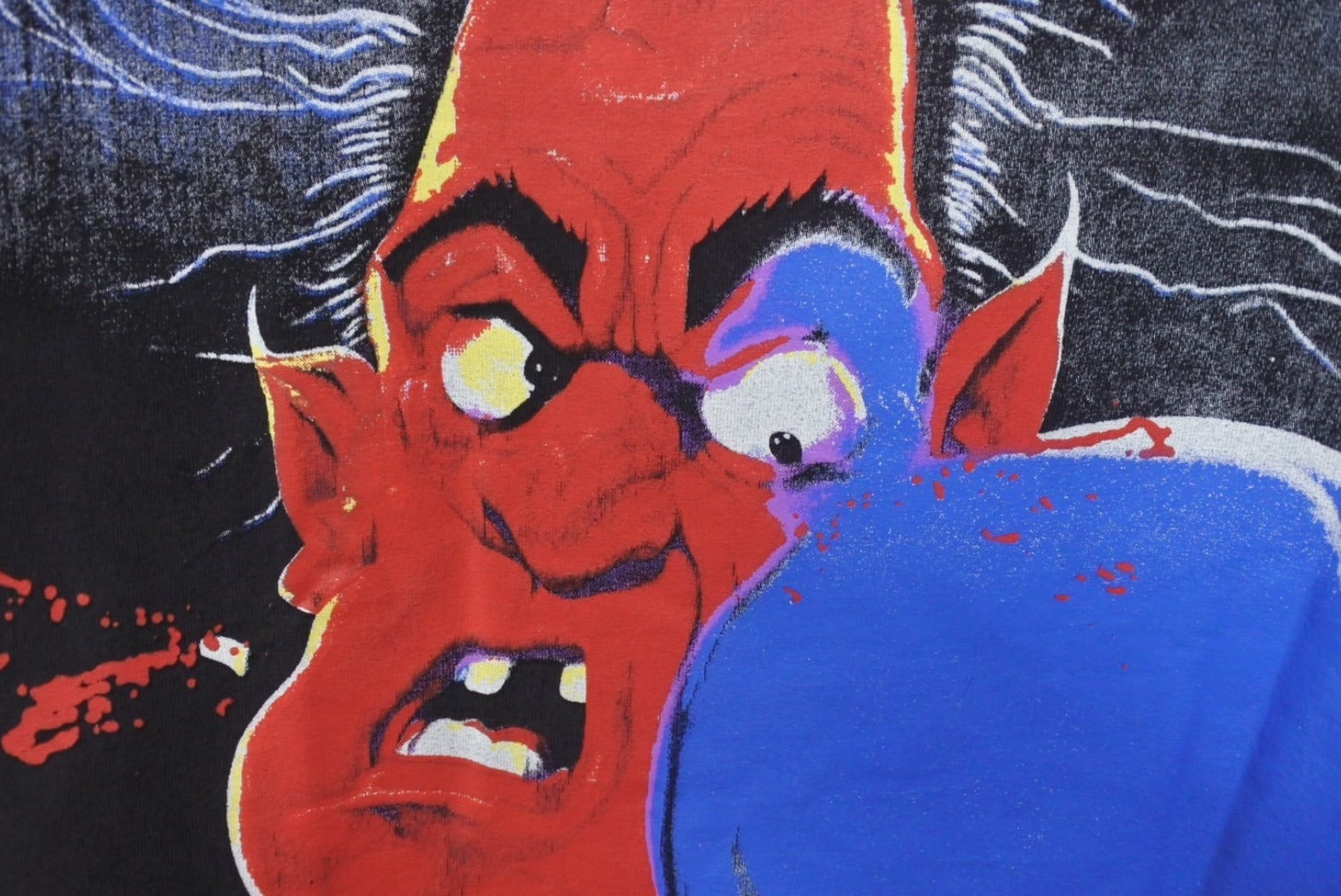 表面にはインパクトのあるサタンがノックアウトされる様子のデザインがされ、裏面には「BIGGER THAN SATAN」と大きくプリントされた存在感のあるアイテムです。