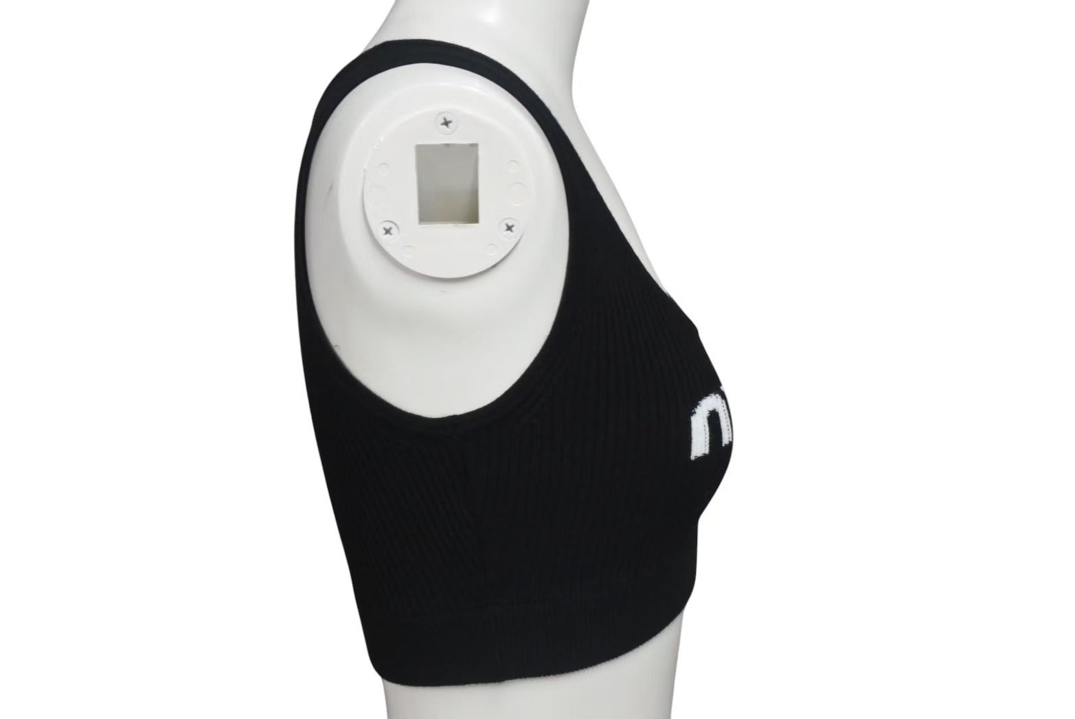 斬新な美学と現代的なデザインが特徴のこのビスコース トップスは、魅惑的なルックスを演出するのに最適です。クロップ カットとリブ編みがシルエットを引き立て、インターシャ ロゴが象徴的なタッチでトップスを完成させます。