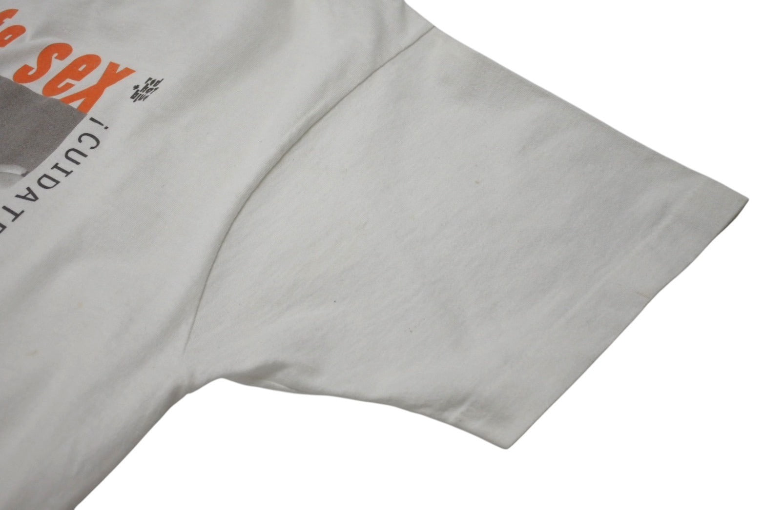 90年代を代表する写真家スティーヴンマイゼルの撮影したキャンペーンである「safe sex is hot sex」のゲイバージョンです。年々高騰しておりコレクターやディーラー、スタイリストなどが抱えこみ、滅多に出ない激レアなアイテムです。FRUIT OF THE LOOMボディです。