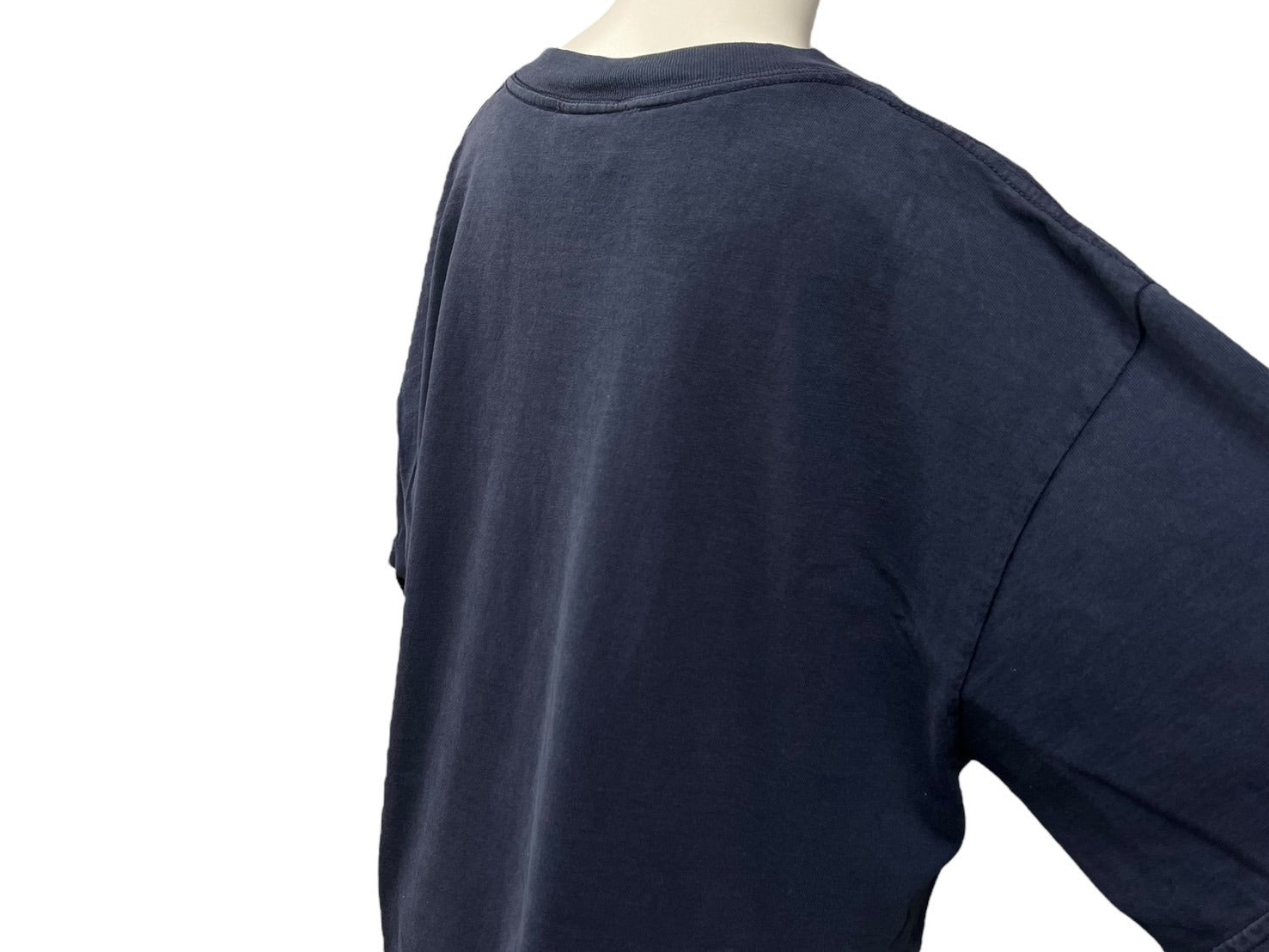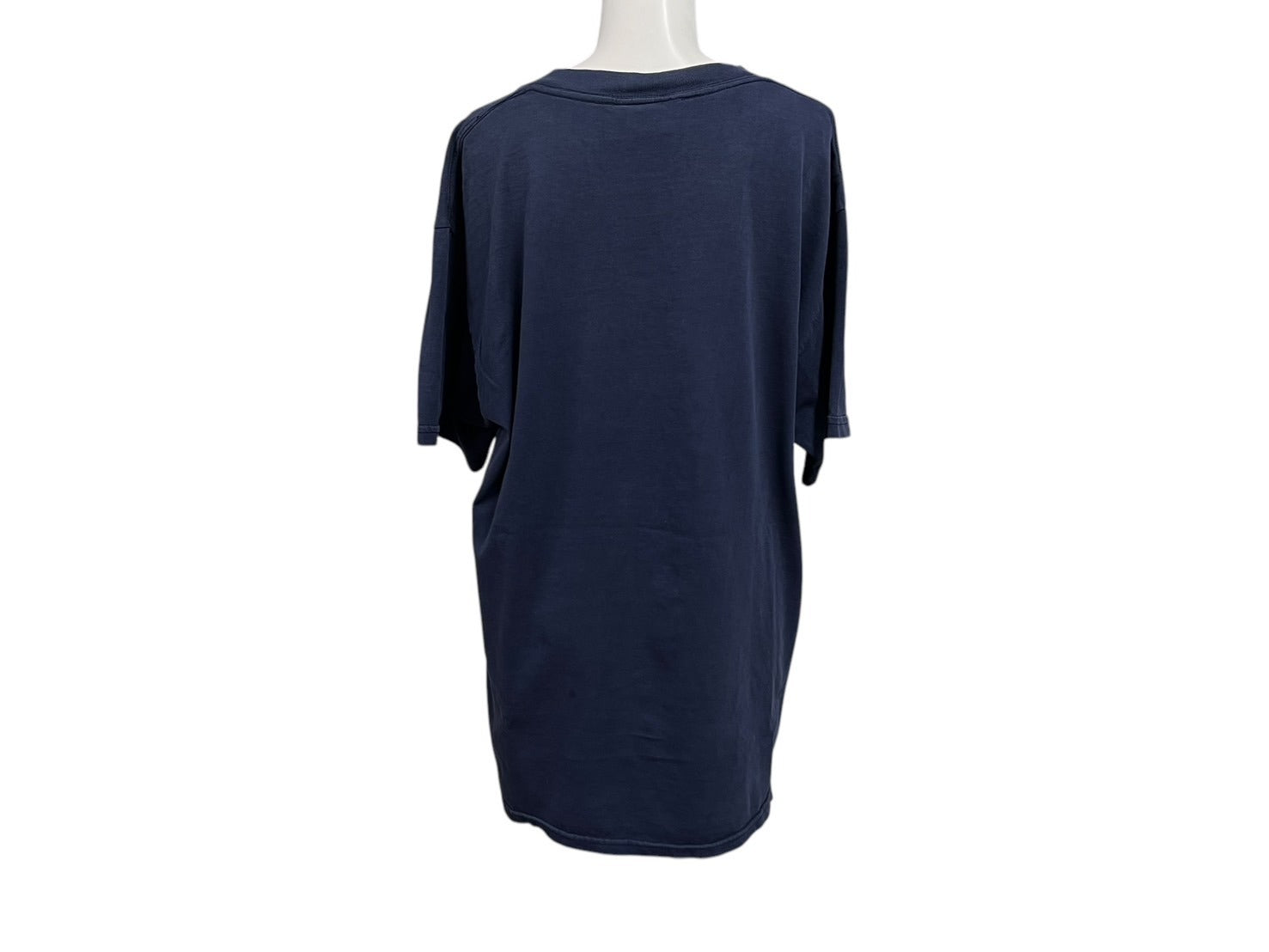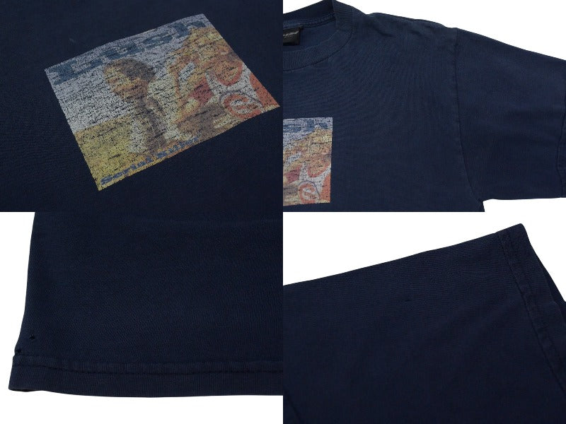 全体的に色褪せあります。プリントにヒビ割れあります。肩、首元、裾に穴があります。中古品としてお使い頂けます。
