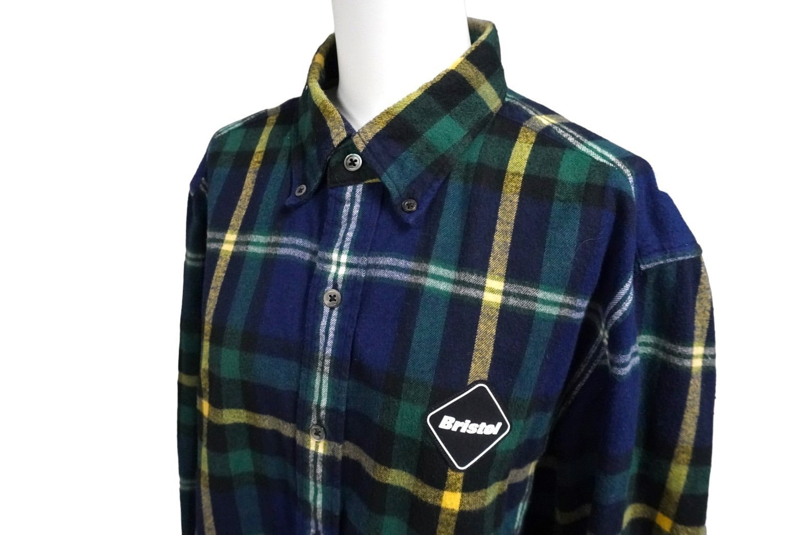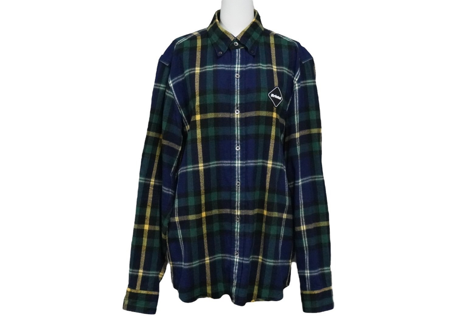 F.C.R.B. エフシーアールビー ロゴ チェックシャツ ネイビー系 FCRB-192073 19AW サイズL 良品 中古 57934