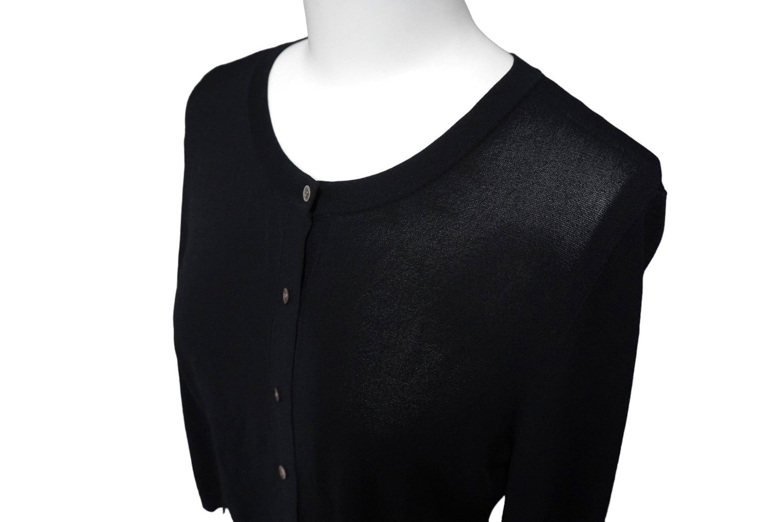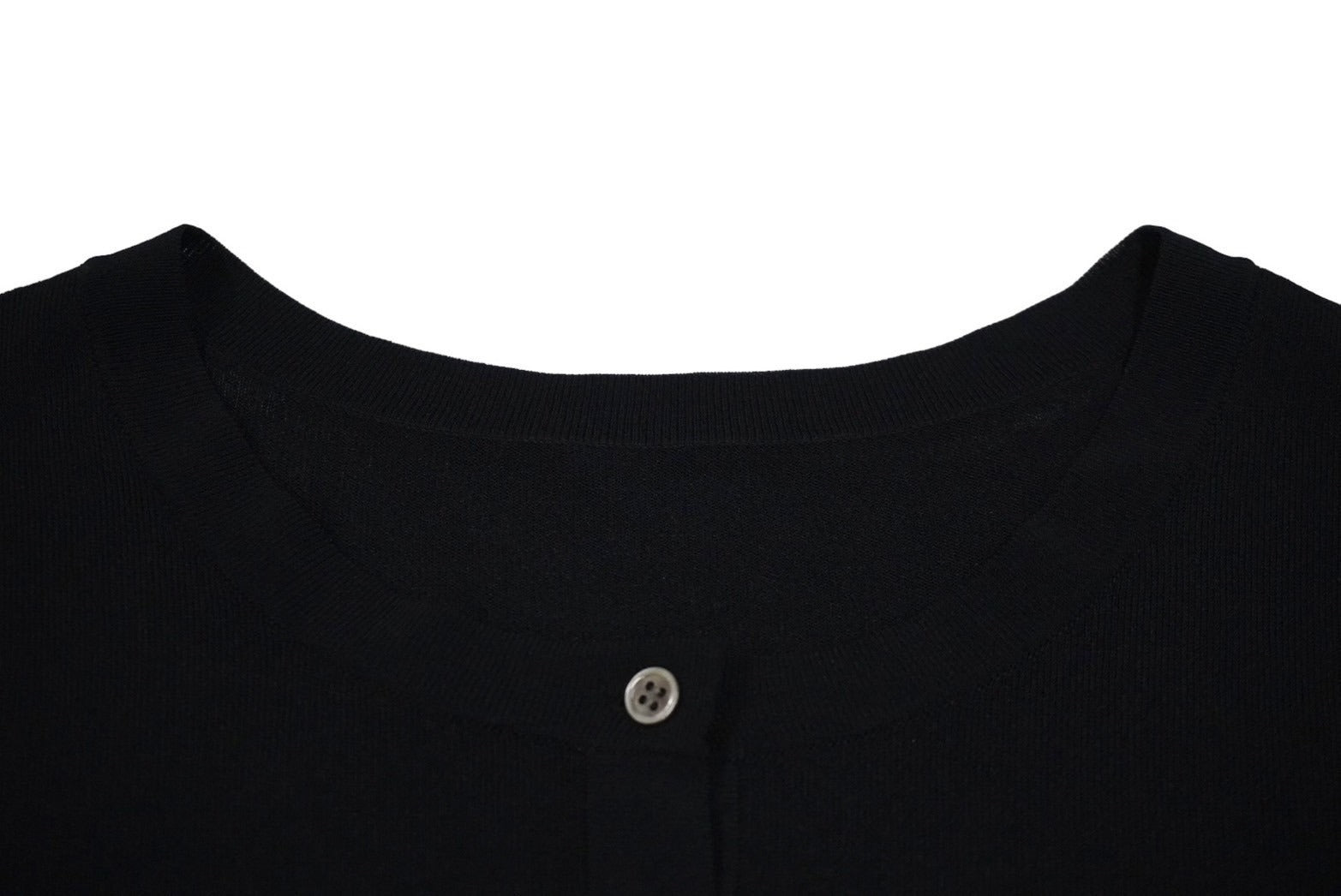 シルエットはシンプルかつエレガントなクルーネックの長袖カーディガンとなっており、ワードローブの定番として活躍するアイテムです。