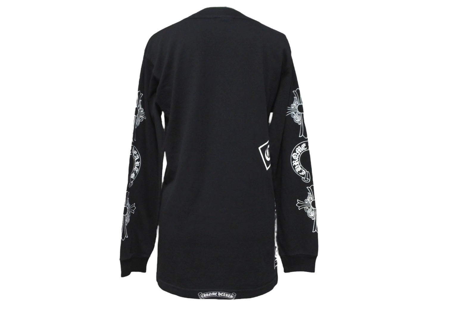 極美品 CHROME HEARTS クロムハーツ 長袖Tシャツ サイズS CHクロス ホースシュー プリント ブラック コットン 中古 64163