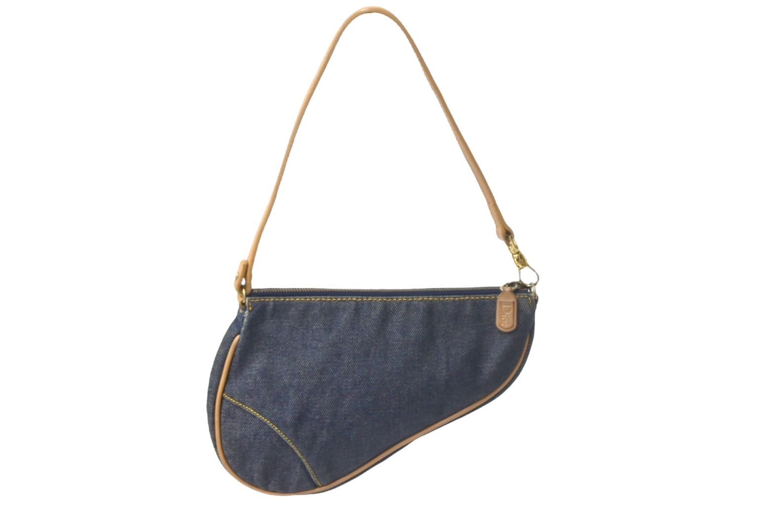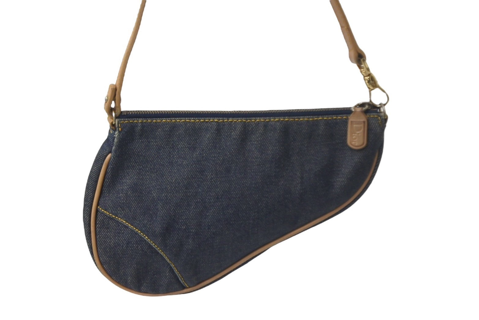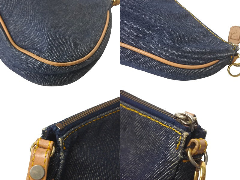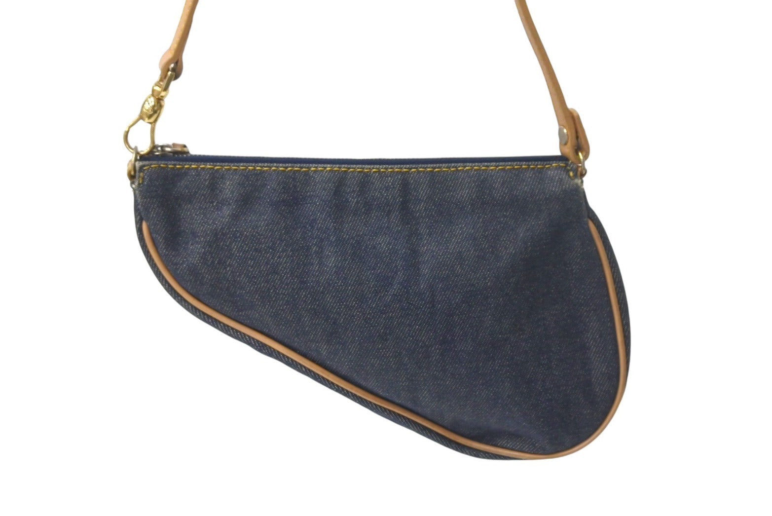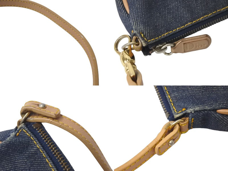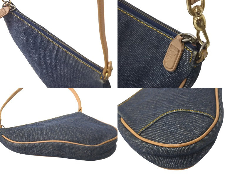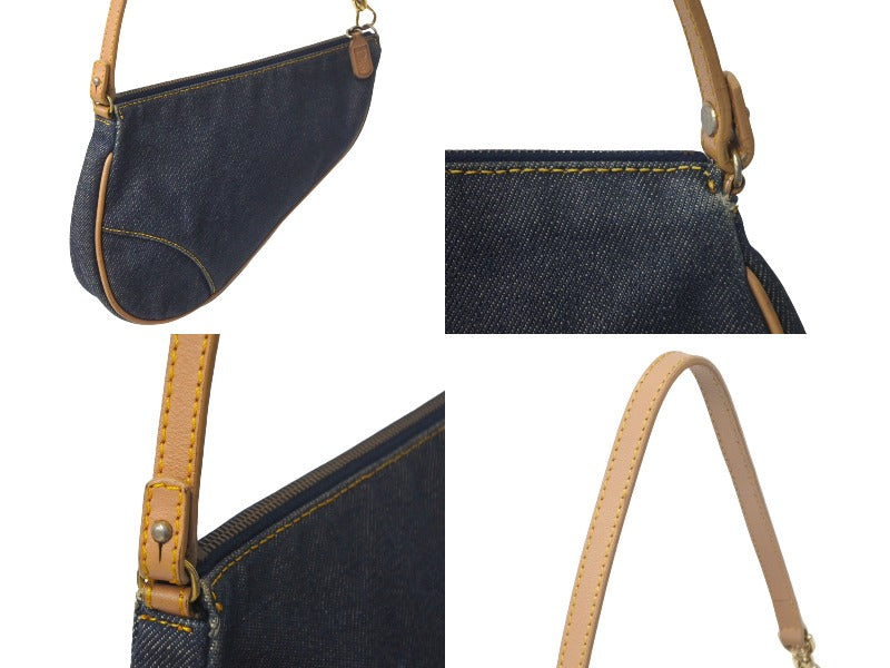 Christian Dior クリスチャンディオール ハンドバッグ ミニ サドルバッグ ネイビー ブラウン デニム レザー ゴールド金具 美品 中古 4c069099