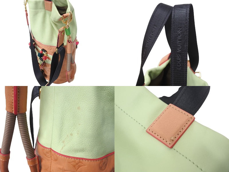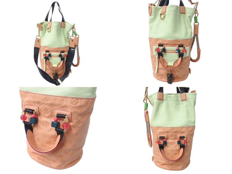 底面、背面下部付近に汚れあり。背面上部付近にシミあり。ハンドル根元付近に傷あり。金具部分にスレ、小傷あり。その他使用感の少ない状態です。