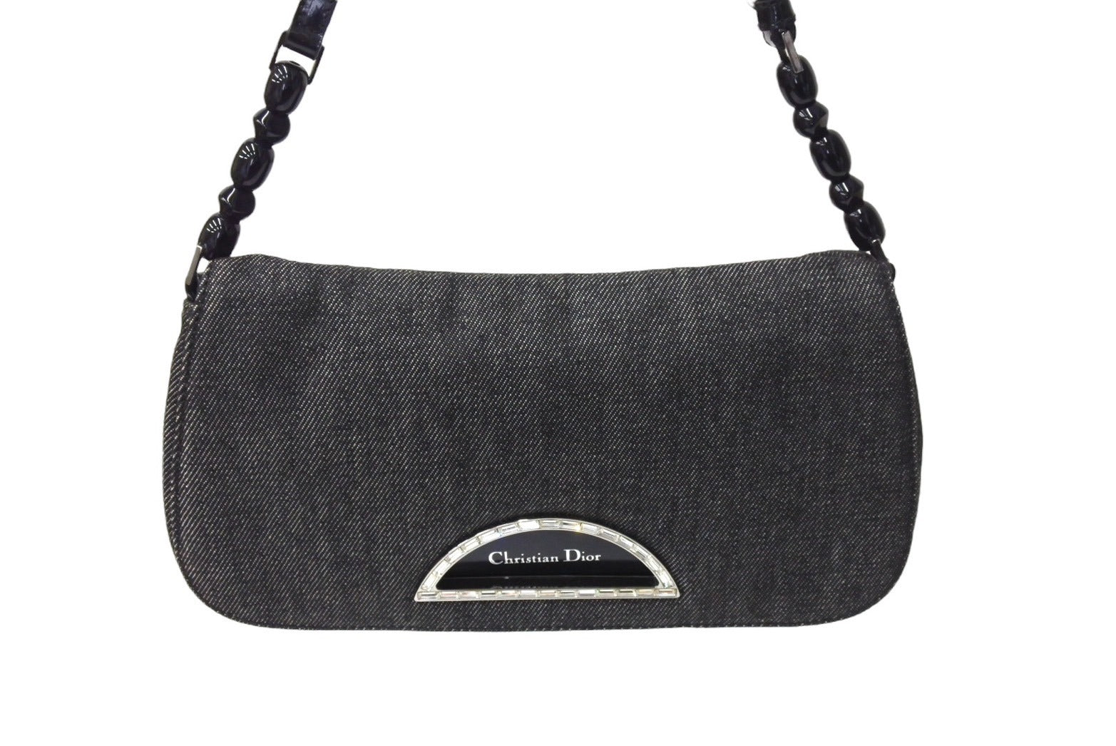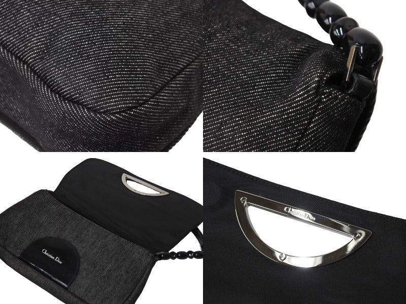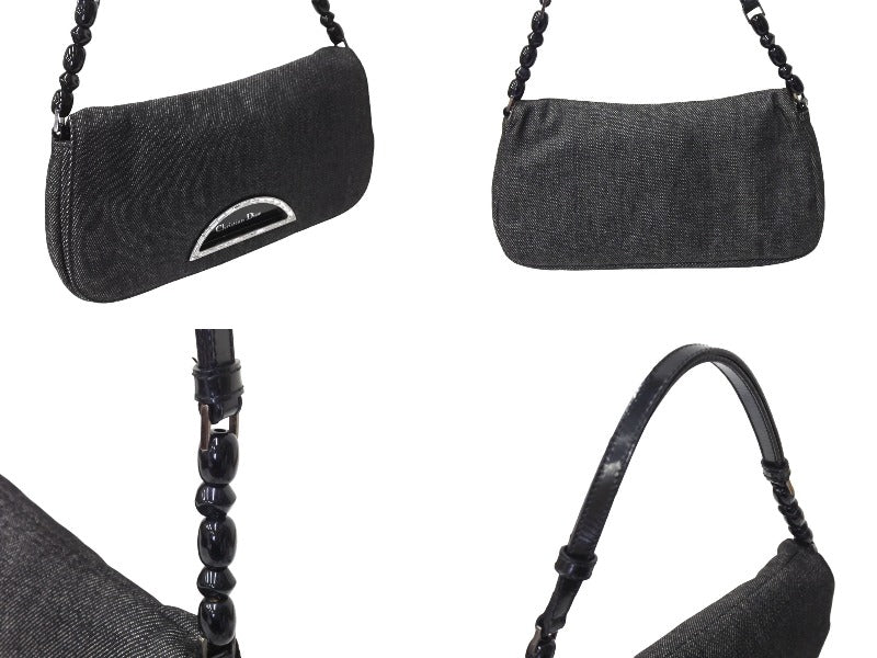 Christian Dior クリスチャンディオール マリスパール ショルダーバッグ ブラックグレー ロゴ キャンバス 美品 中古 66970