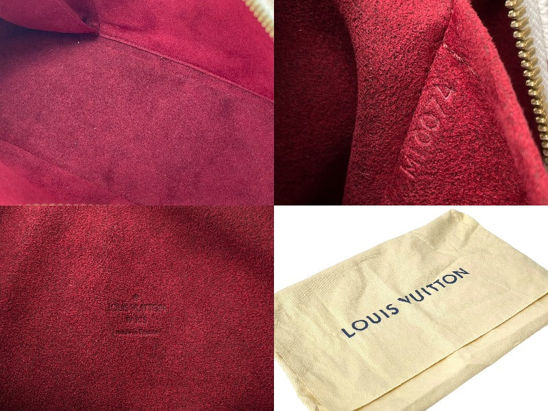 四隅や正面の間口部(スタッズ)には金具が用いられるなどエレガントなデザイン性、正面にスリットポケット、間口はサイドまで伸びたダブルジップで中の確認がし易く、内側はスリットポケットが付いており、小物の収納も可能です。