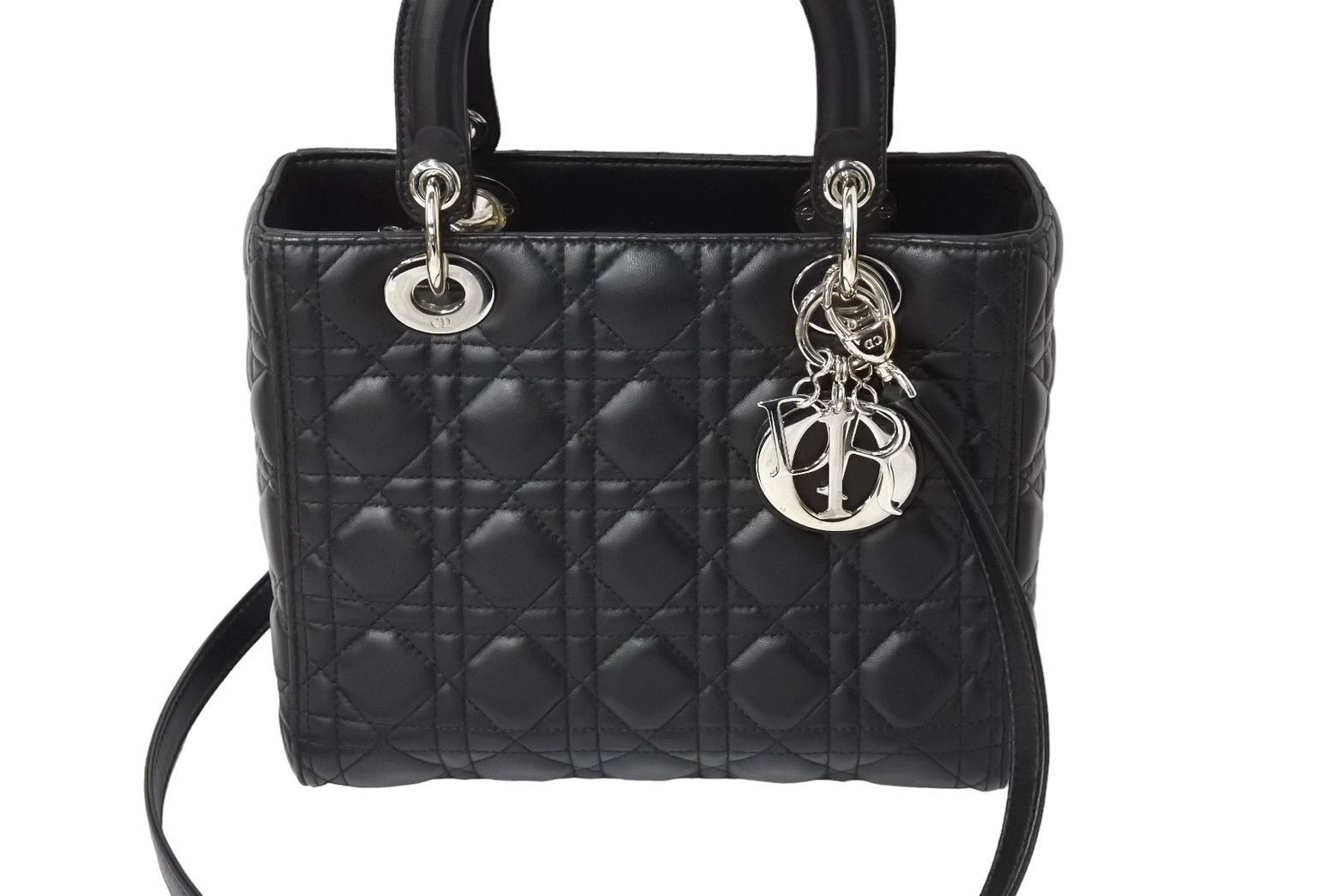 Christian Dior クリスチャンディオール レディディオール ミディアム 2WAY ハンドバッグ カナージュ ブラック 美品 中古 67196