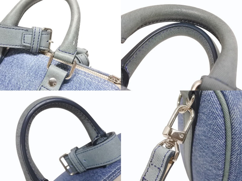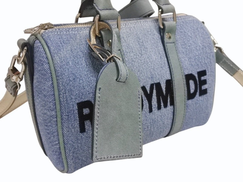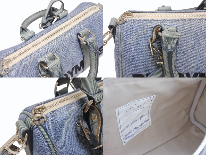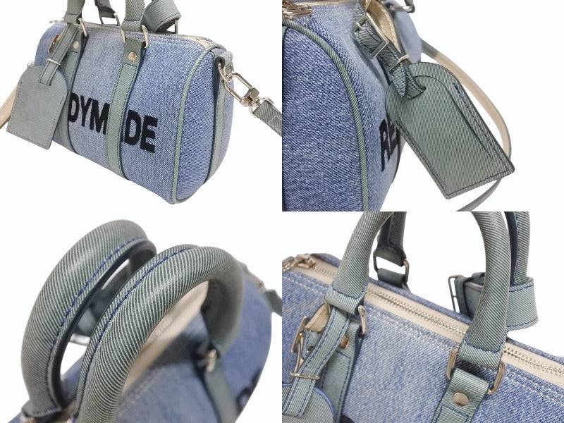 極美品 READY MADE レディメイド OVER NIGHT PM オーバーナイトPM ハンドバッグ ショルダーバッグ デニム ブルー 刺繍 中古 4b006291
