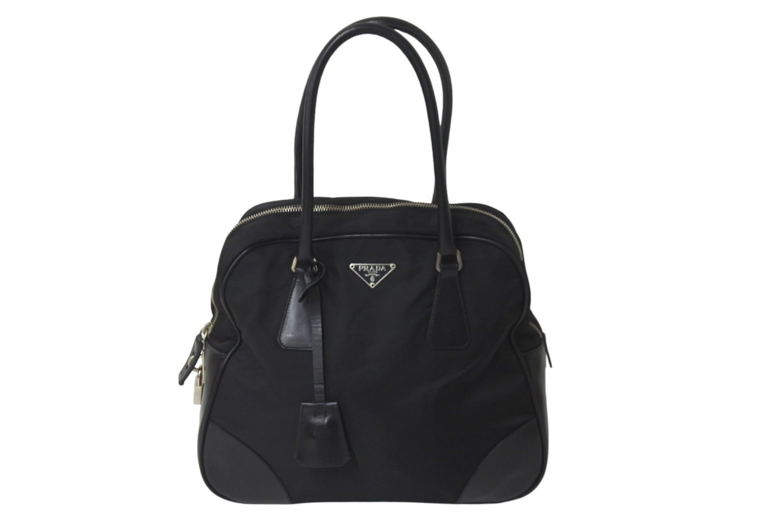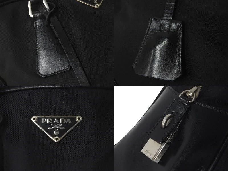 PRADA プラダ ハンドバッグ ブラック 三角プレート B10767 ナイロン レザー シルバー金具 美品 中古 58450