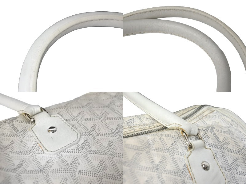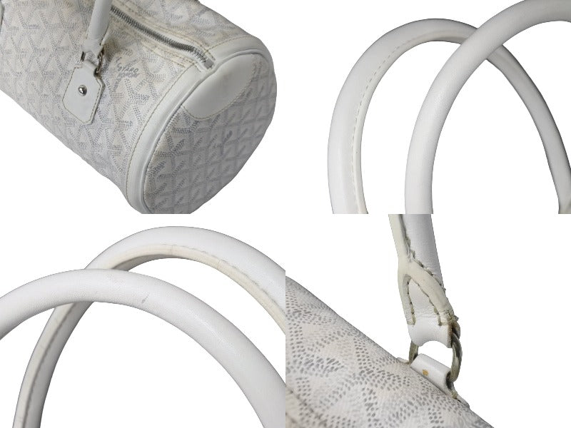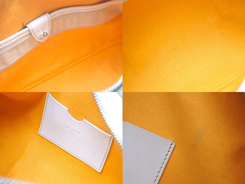 ハンドルコバ割れ、ハンドル付け根ノリシミあり。底面付着汚れ、角スレ、表面ヤケ、色移りあり。内側使用感あり。