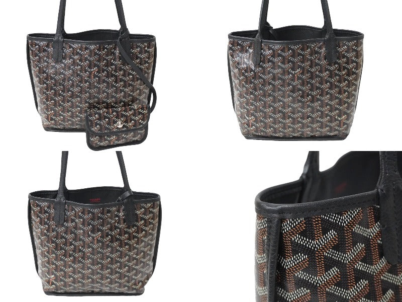 GOYARD ゴヤール アンジュ ミニ ハンドバッグ リバーシブル ミニトートバッグ ブラック PVCコーティングキャンバス 美品 中古 61195