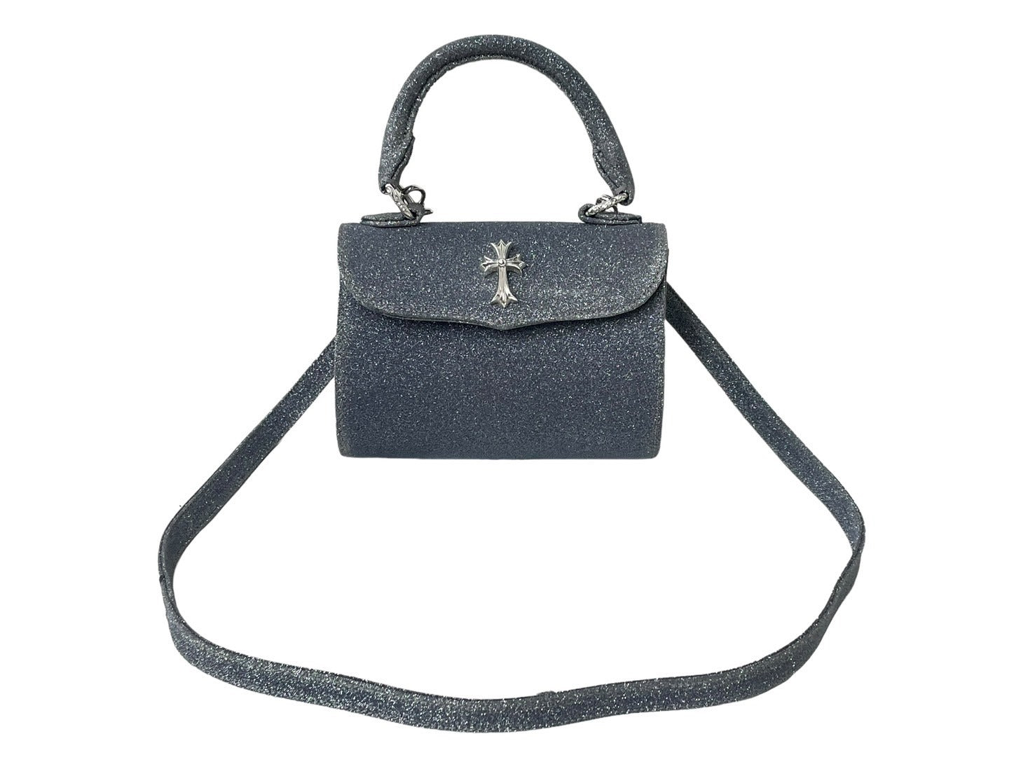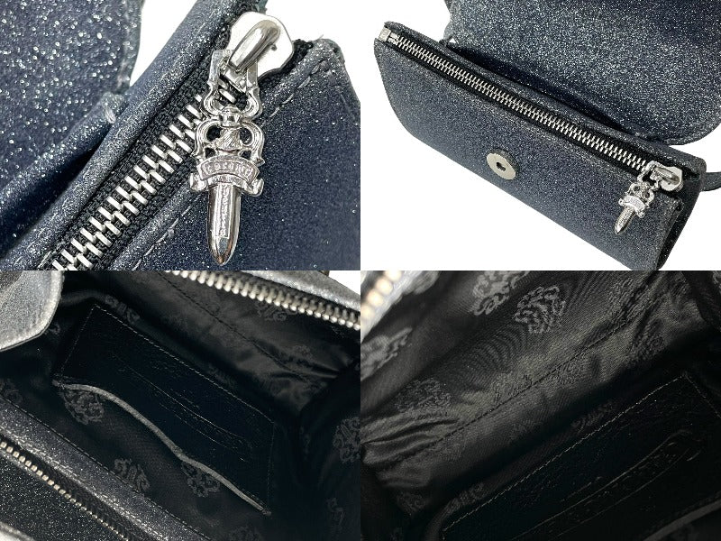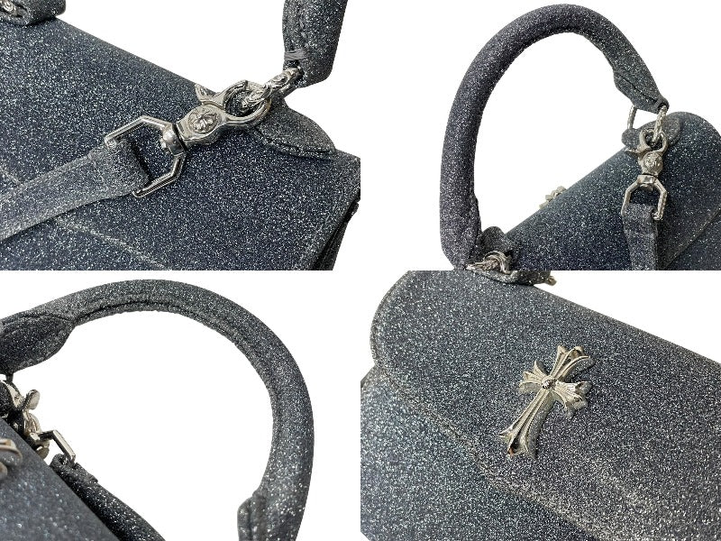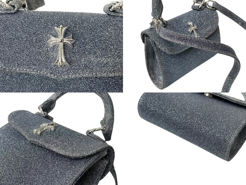 極美品 CHROME HEARTS クロムハーツ ADAMS アダムス クロス 2WAY ラメ ハンドバッグ ブルー シルバー 中古 63829