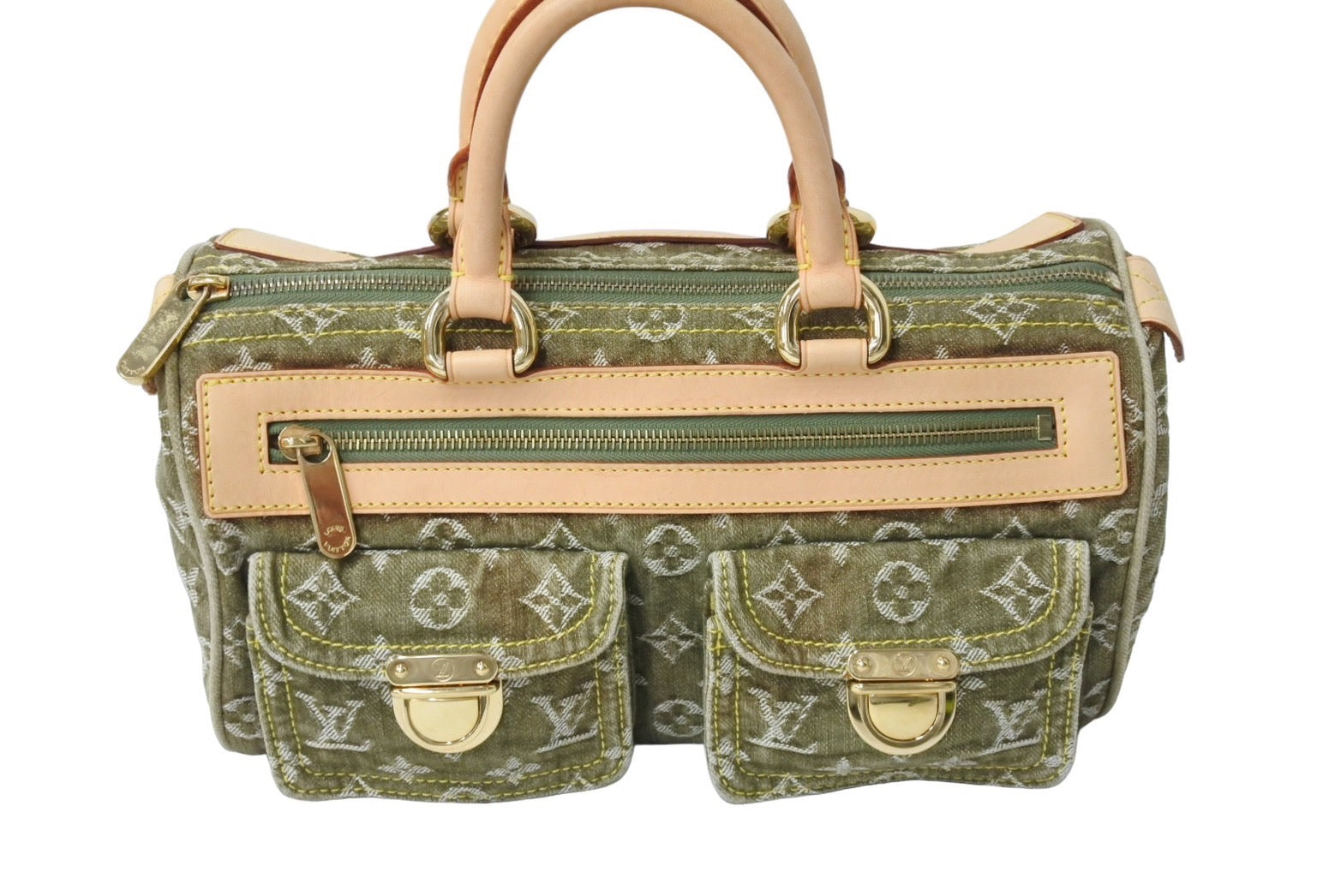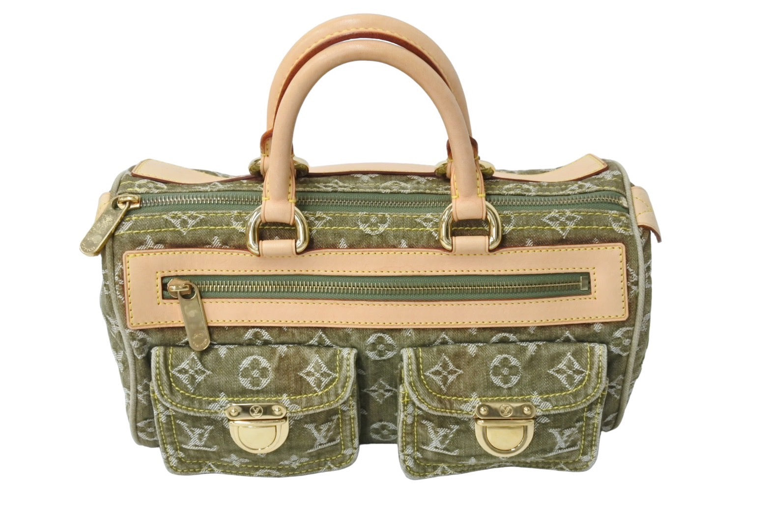 LOUIS VUITTON ルイヴィトン ネオ スピーディ ハンドバッグ M95215 モノグラムデニム カーキ ゴールド金具 美品 中古 65692