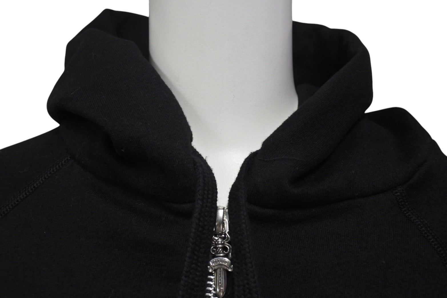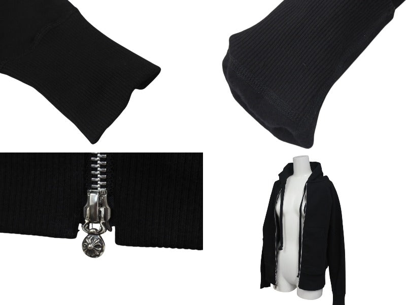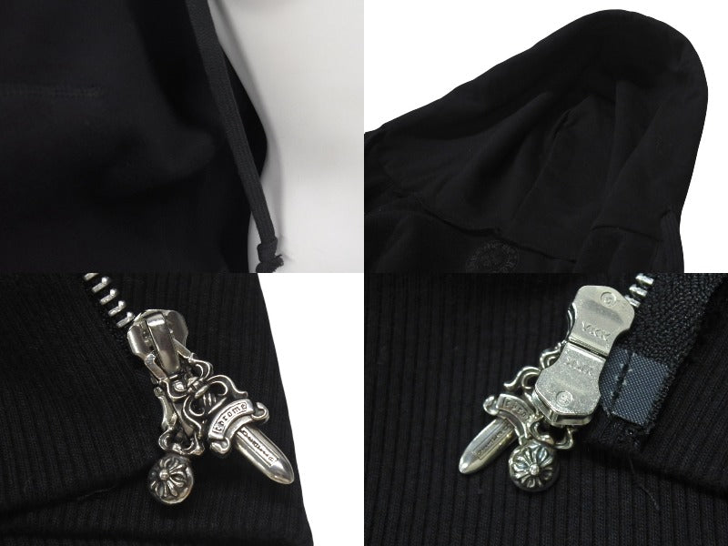 極美品 CHROME HEARTS クロムハーツ クロスパッチ ダブルジップ パーカー ブラック 新型 フーディ― シルバー金具 サイズM 中古 4b000783