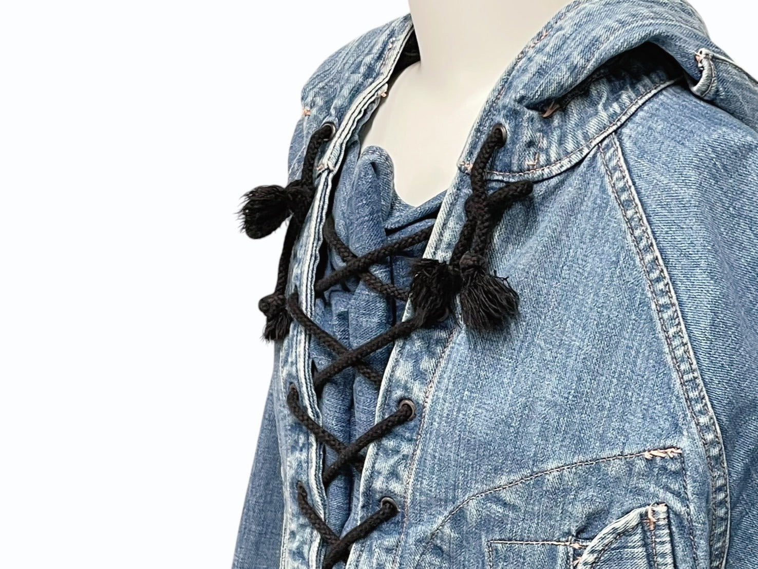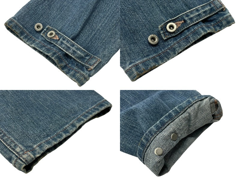 縫い目に糸ほつれあり。左袖先に汚れあり。タグに色褪せあり。その他目立つ汚れやダメージの少ない商品です