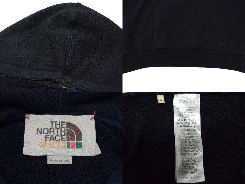GUCCI グッチ x THE NORTHFACE ザノースフェイス コラボ ロゴパーカー ブラック イエロー コットン サイズXL 651724 美品 中古 4c074679