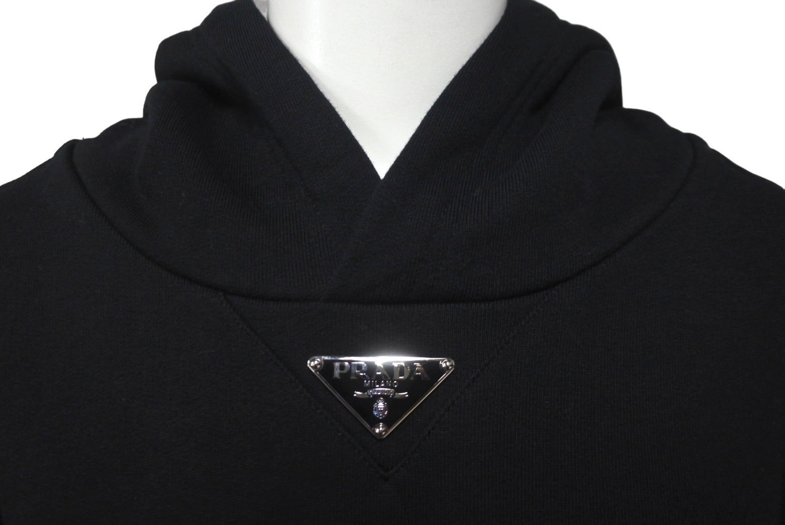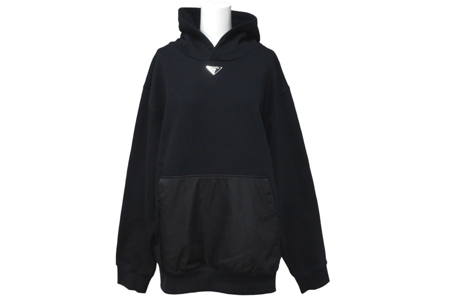極美品 PRADA プラダ コットンフリース フーディー 23年 UJL45B ブラック パーカー トライアングルロゴ 現行 サイズXS 中古 61527