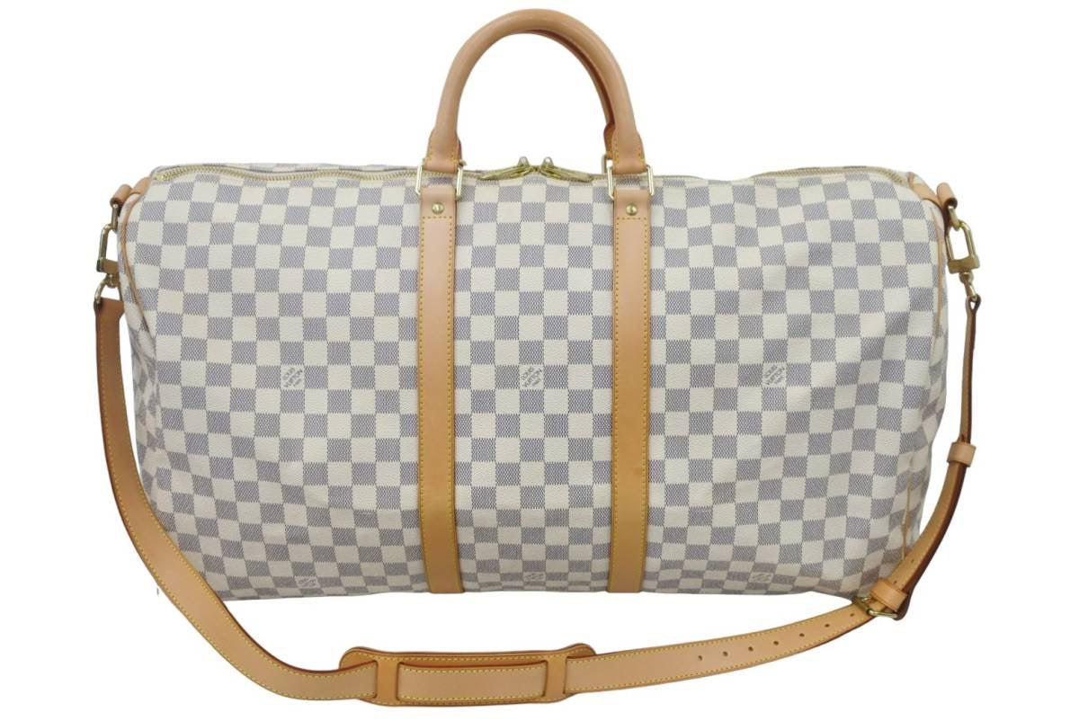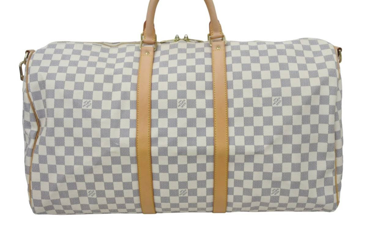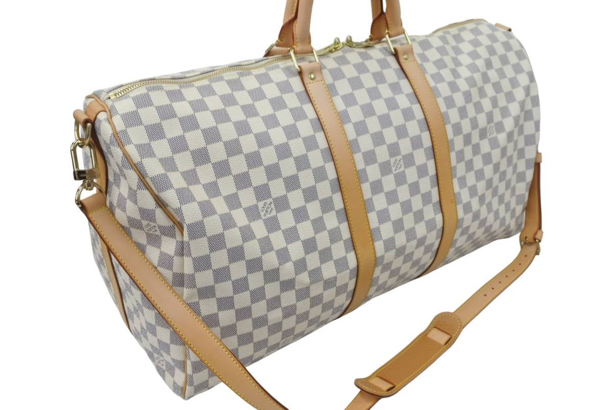 イタリアのリゾート地リビエラの海と砂をイメージして作られたダミエアズール、2、3泊くらいの旅行などに最適なボストンバッグ。