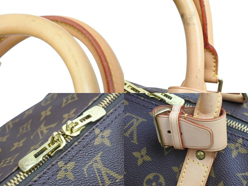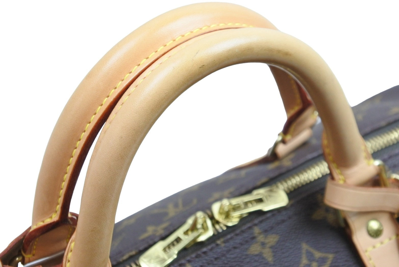 ハンドル汚れあり、金具傷あり、ヌメ革レザー部分シミ、シワ、スレ、割れあり、バック内側に僅かなスレあり、その他目立つ傷や汚れ無く美品です。
