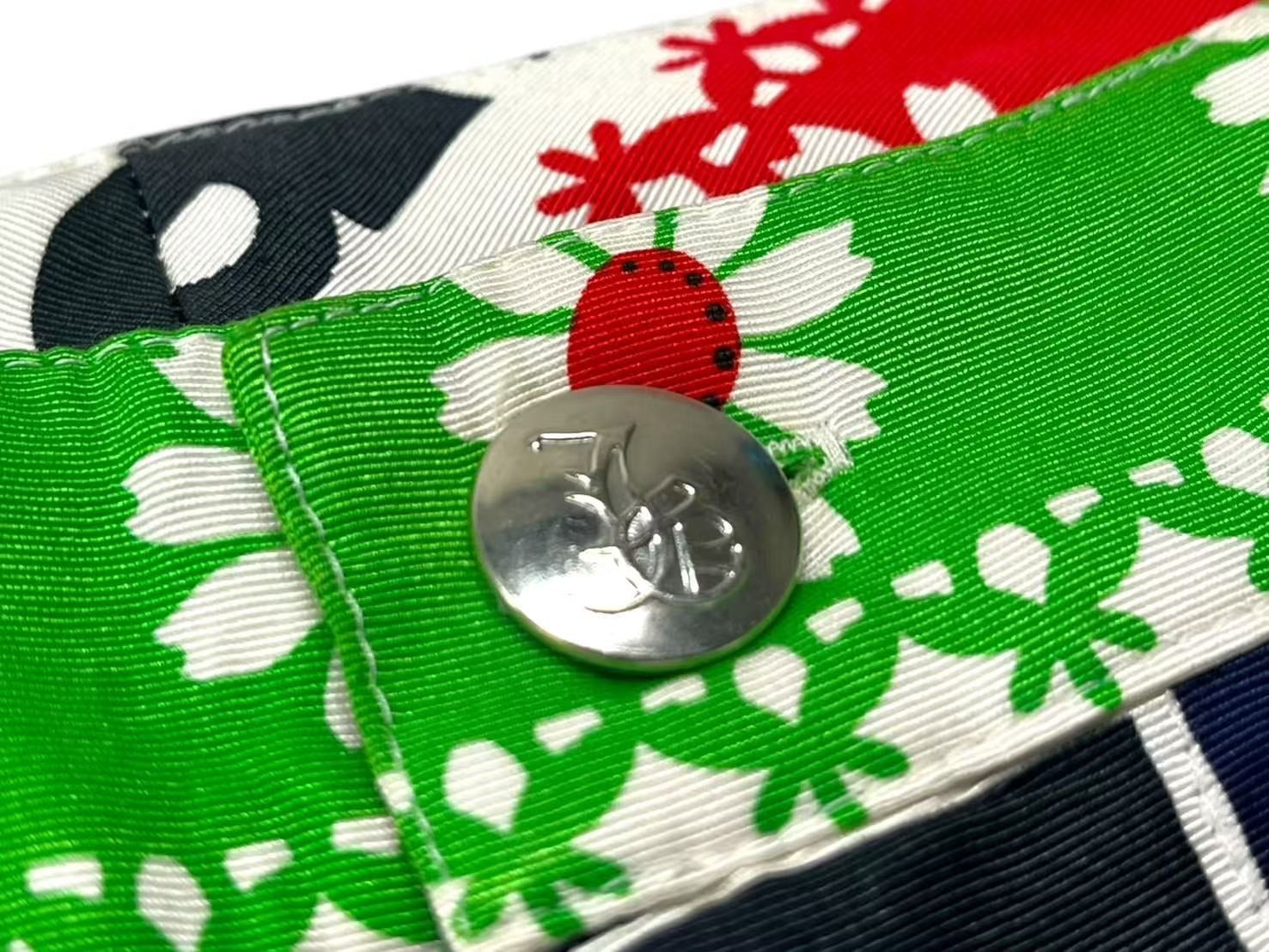 ウエストに糸ほつれ、ボタンに小スレ傷、前と後ろに小さな汚れがあります。その他目立つ汚れやダメージの少ない商品です。