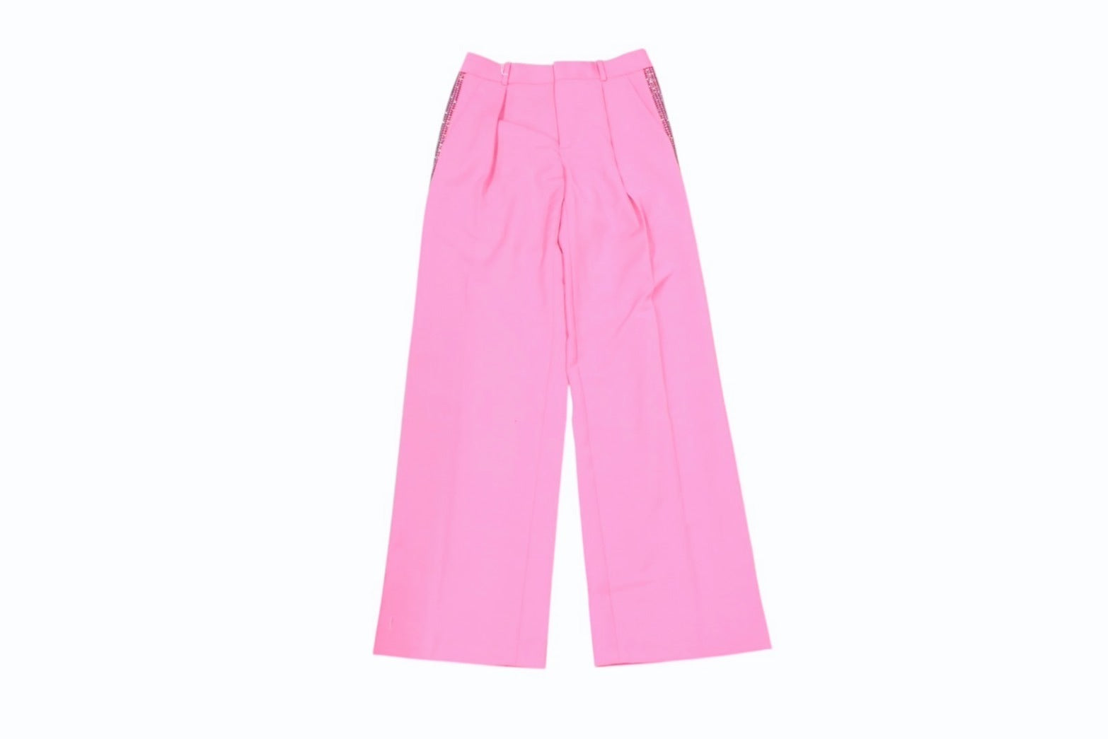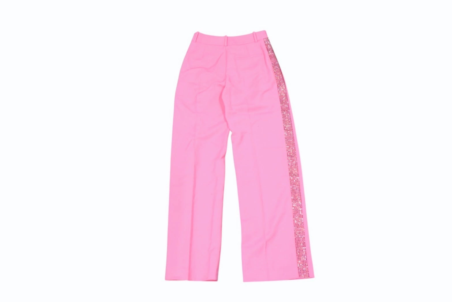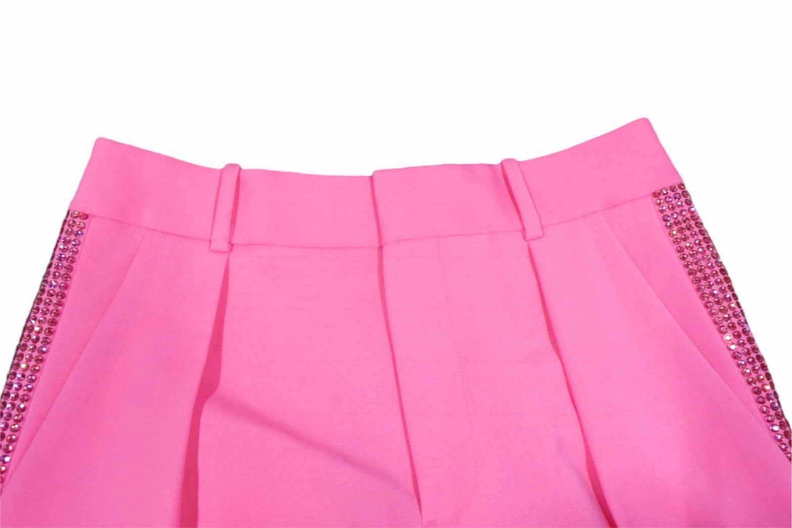 ラインストーン があしらわれた、色鮮やかなスラックスになります。