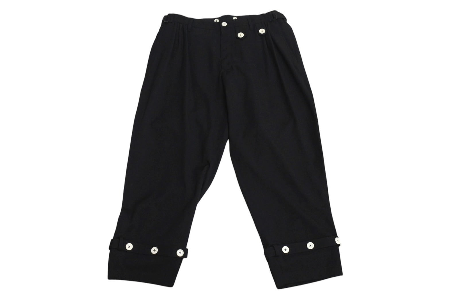 ウエストも同様でボタンと横に絞りもあるのでお好みに変えて頂けるギミックの効いたパンツです。