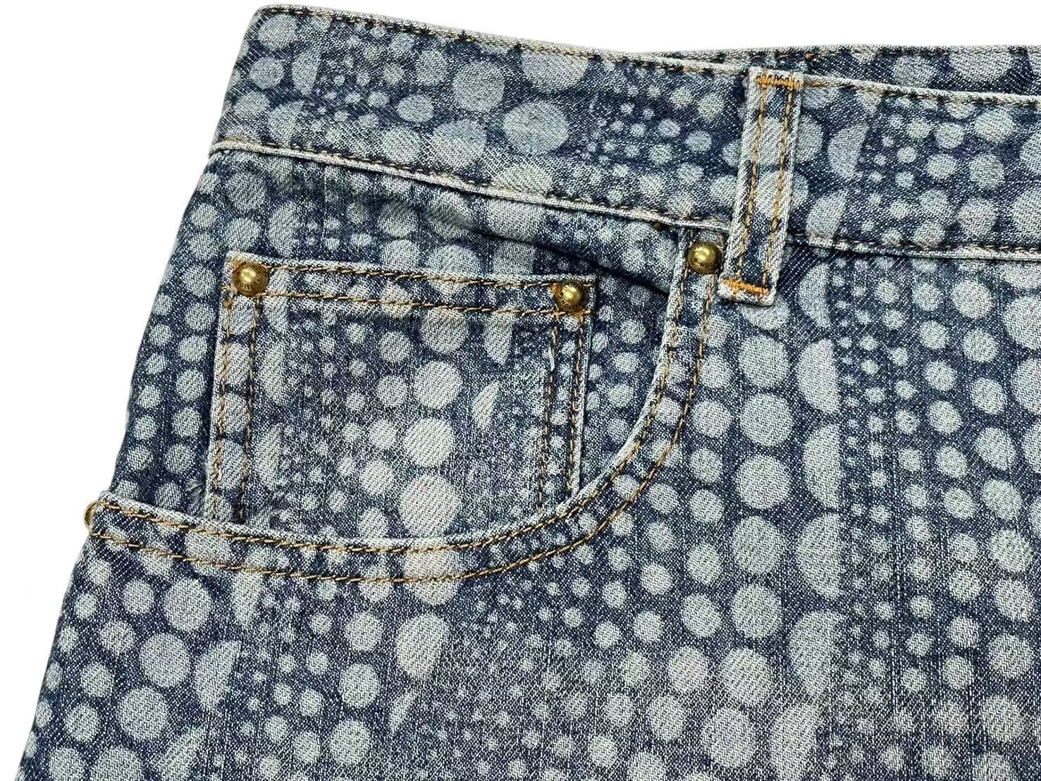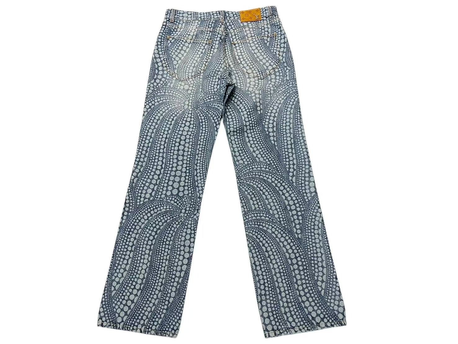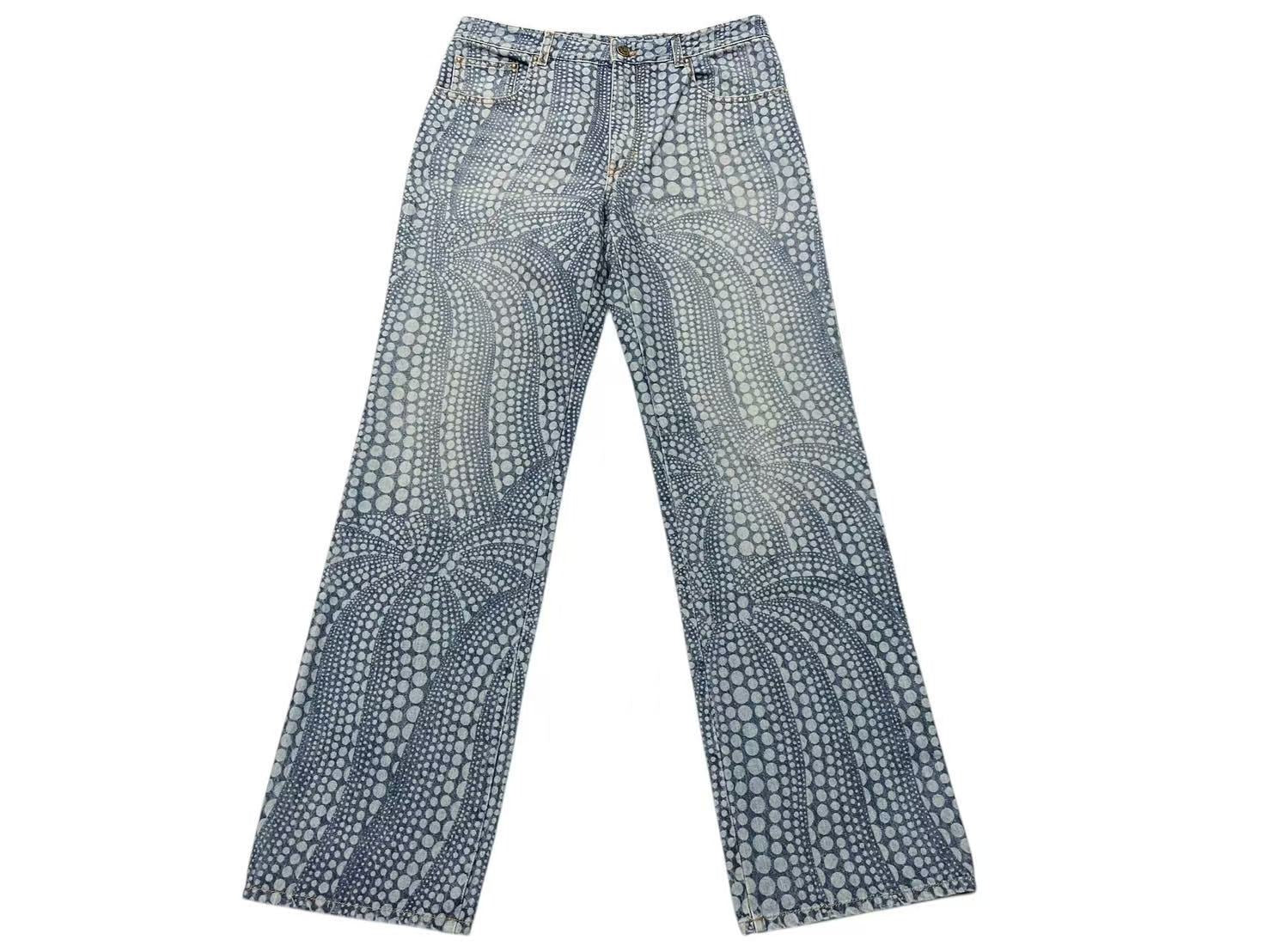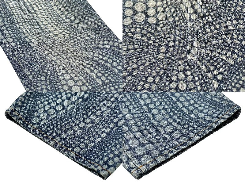 草間彌生コラボのデニムパンツです。総柄デザインのパンプキンプリントがインパクト大なアイテムです。スタイリングのアクセントにぴったりです。