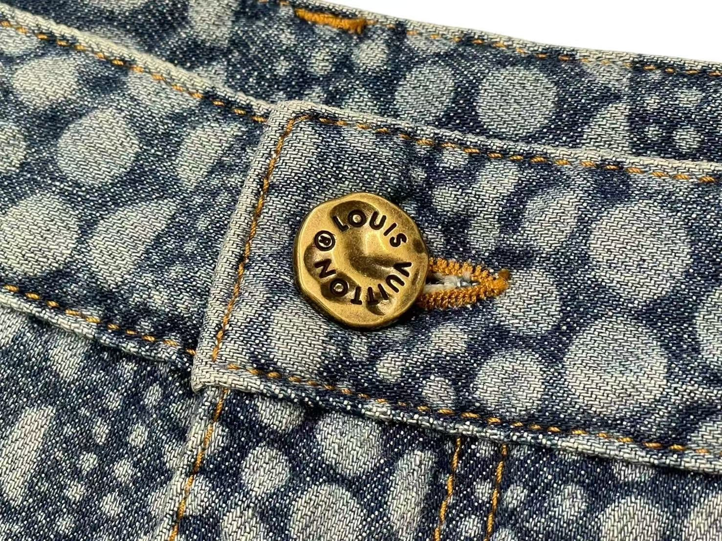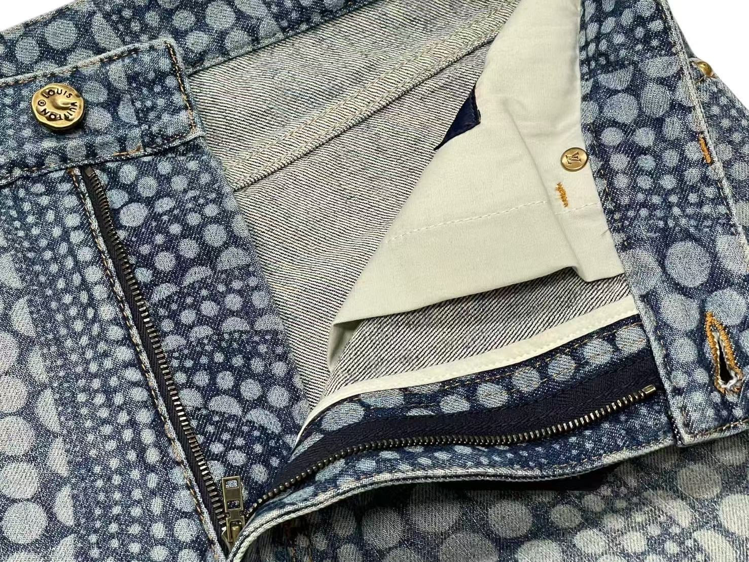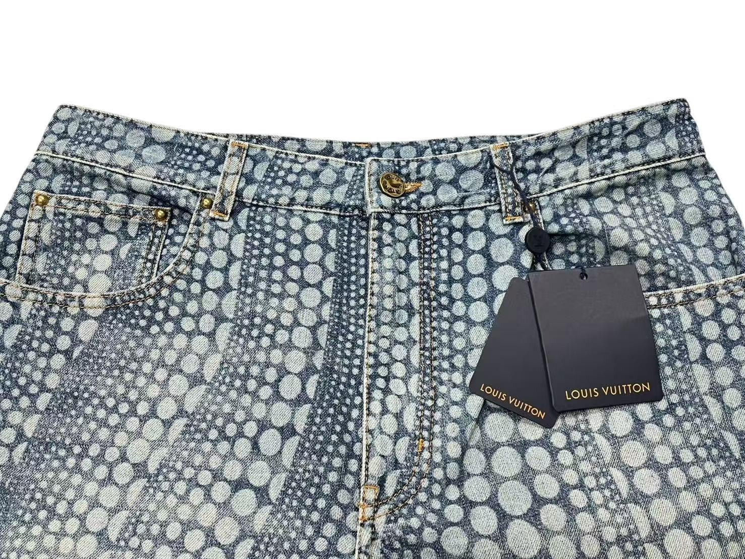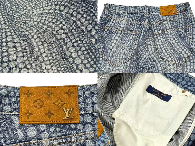 草間彌生コラボのデニムパンツです。総柄デザインのパンプキンプリントがインパクト大なアイテムです。スタイリングのアクセントにぴったりです。