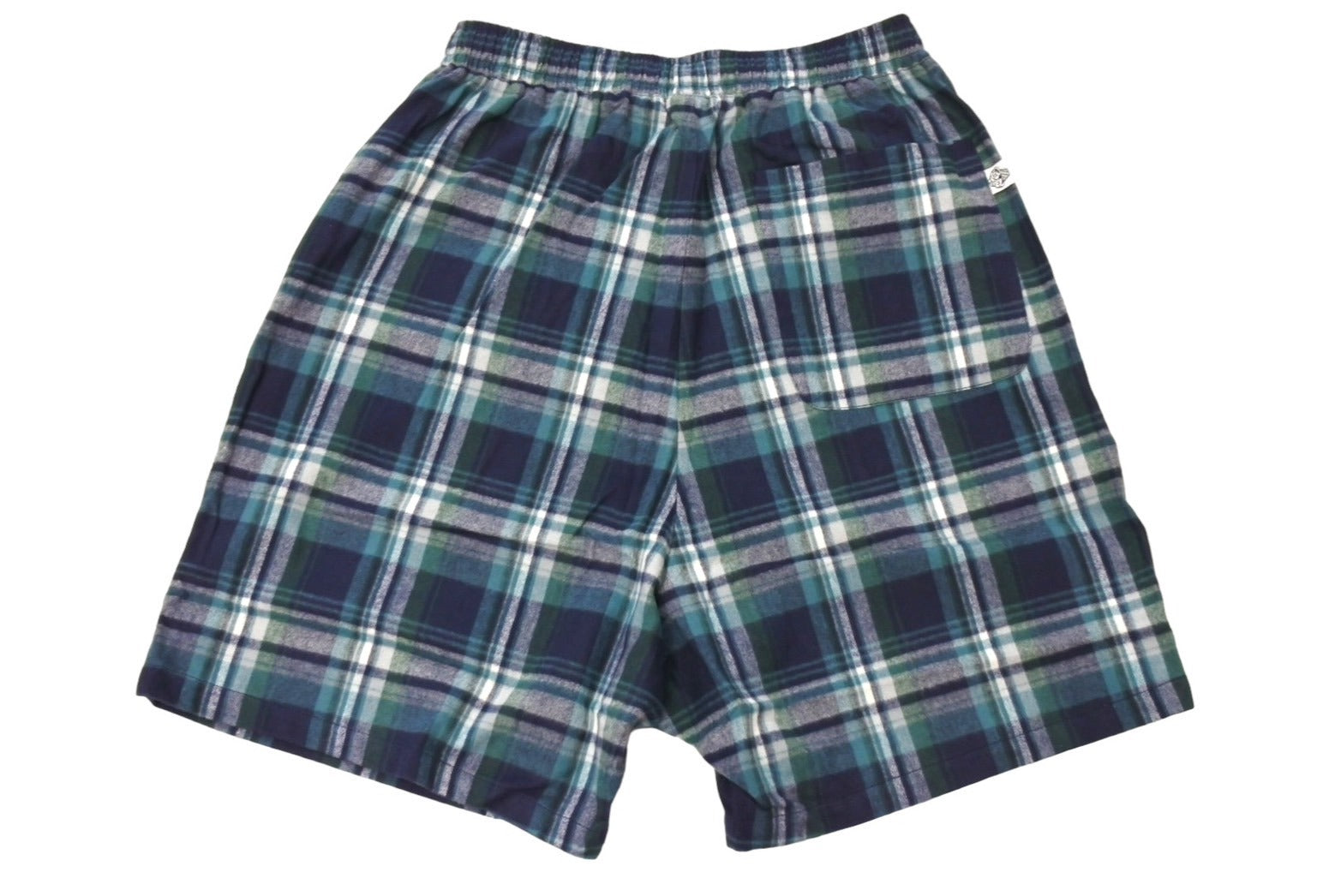 柔らかい2色のフランネルチェックの生地を使用したウエストがイージー仕様のリラックスした雰囲気のSHORTS。