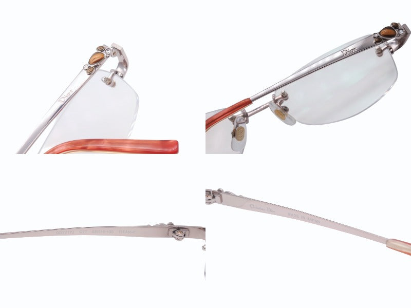 テンプルにあしらわれたストーンがアクセントになった可愛らしいリムレス メガネです。